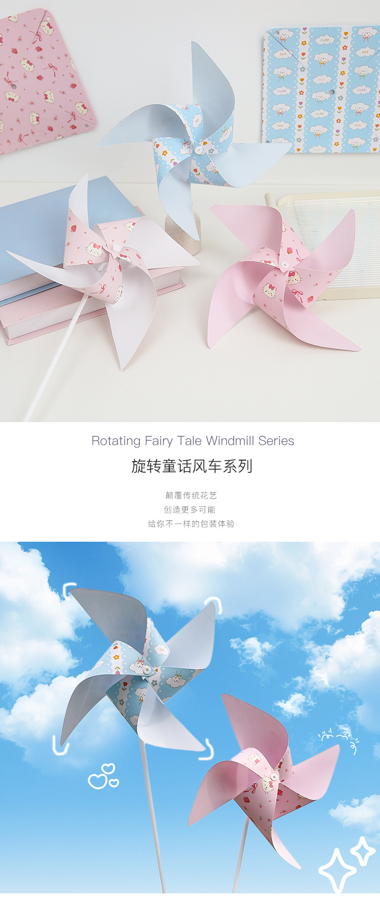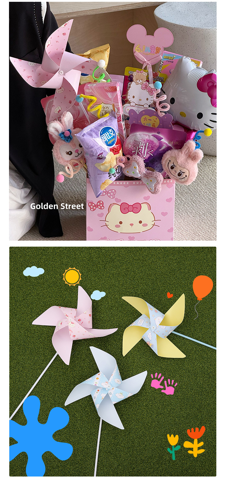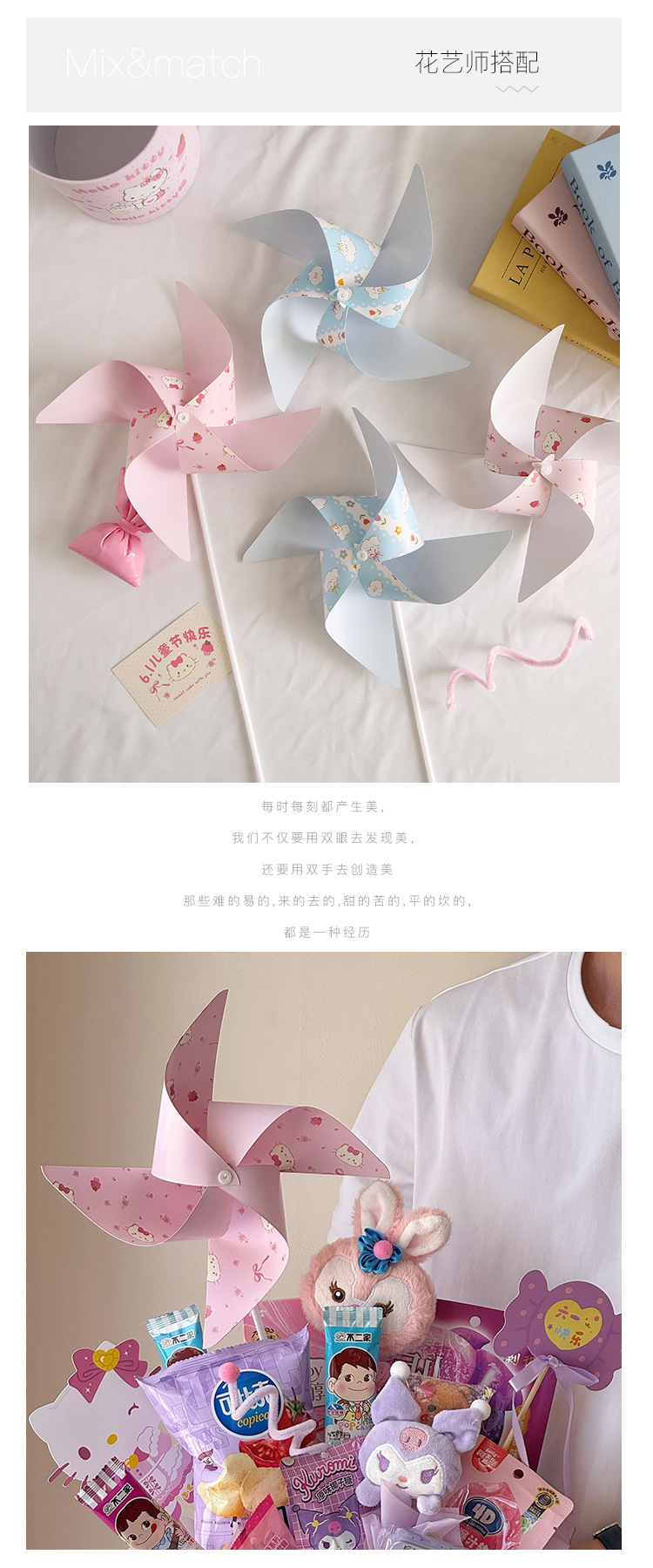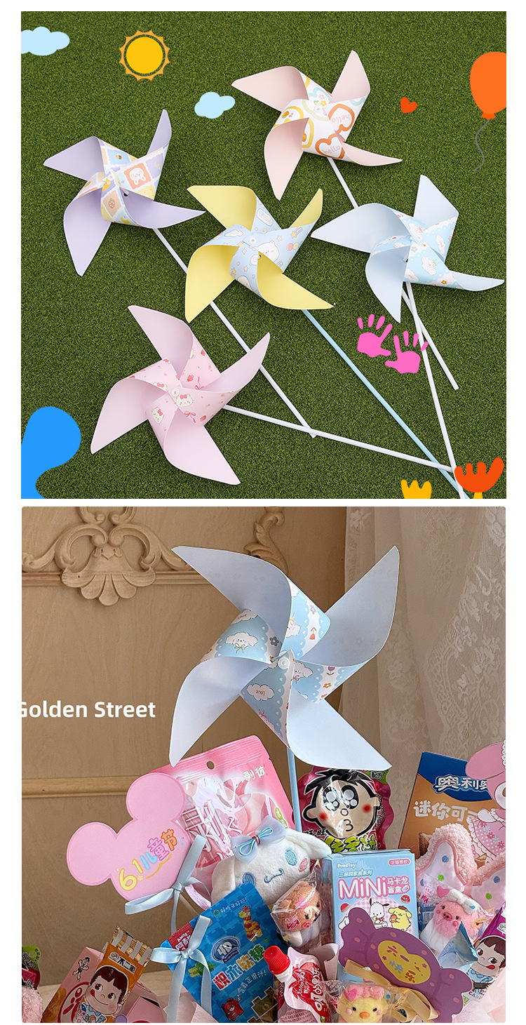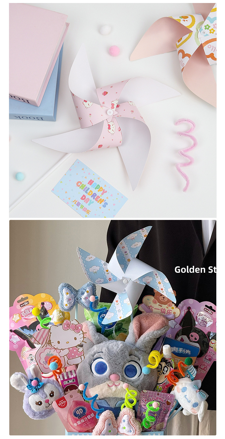 Día del Niño Molino de viento de color giratorio Caja de regalo Accesorios decorativos Paquete de material hecho a mano de bricolaje Decoración de ramo