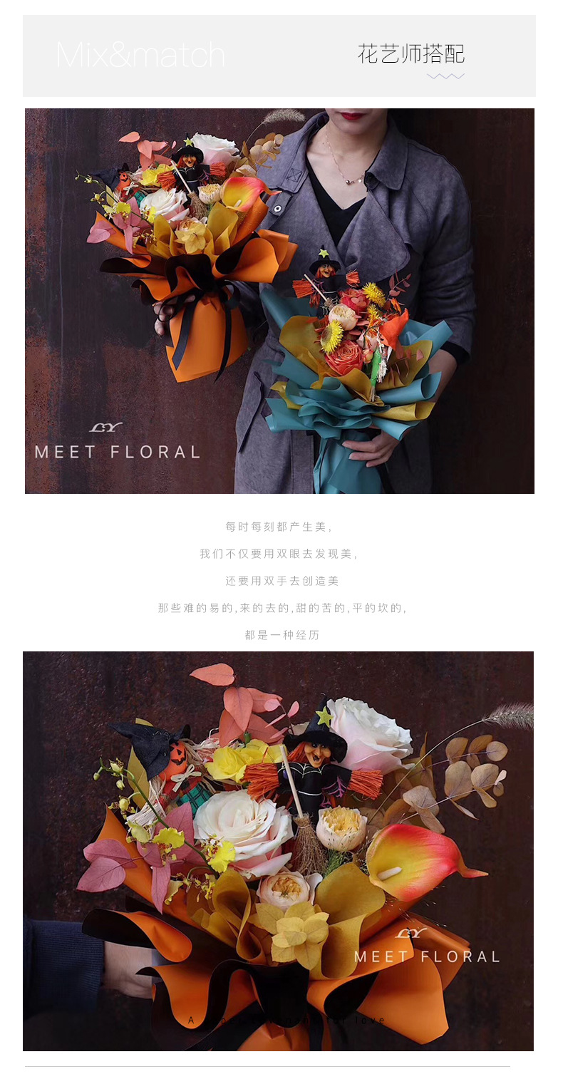 Halloween ramo de flores accesorios de decoración Hombre de Aspajarita bruja simulación calabaza cara ornamentos embalaje de flores materiales DIY