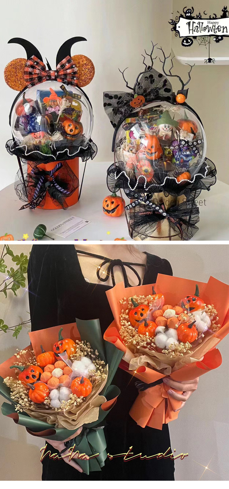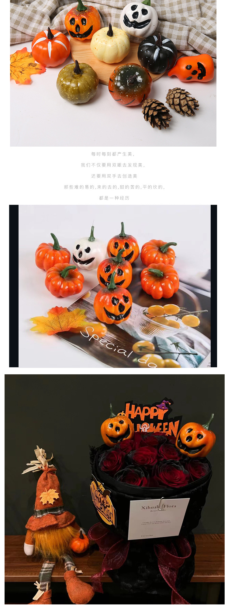 Halloween simulación espuma calabaza cara bruja decoración ornamentos ramo de flores embalaje material DIY accesorios