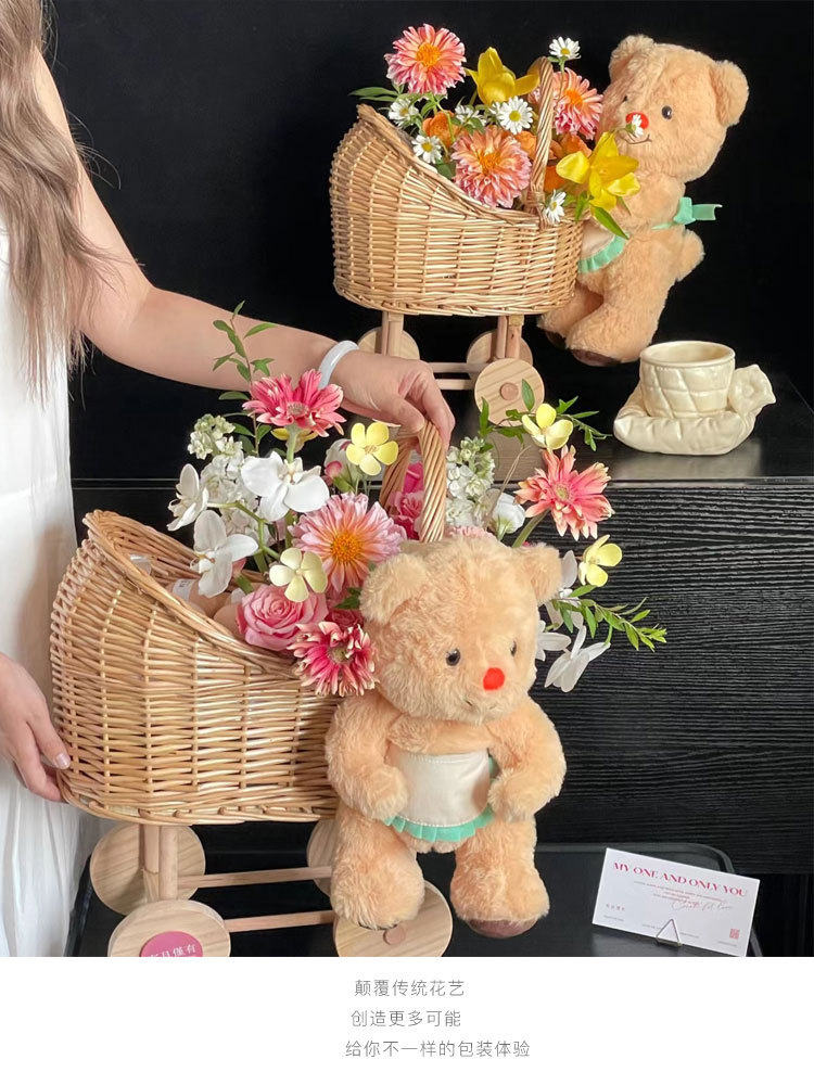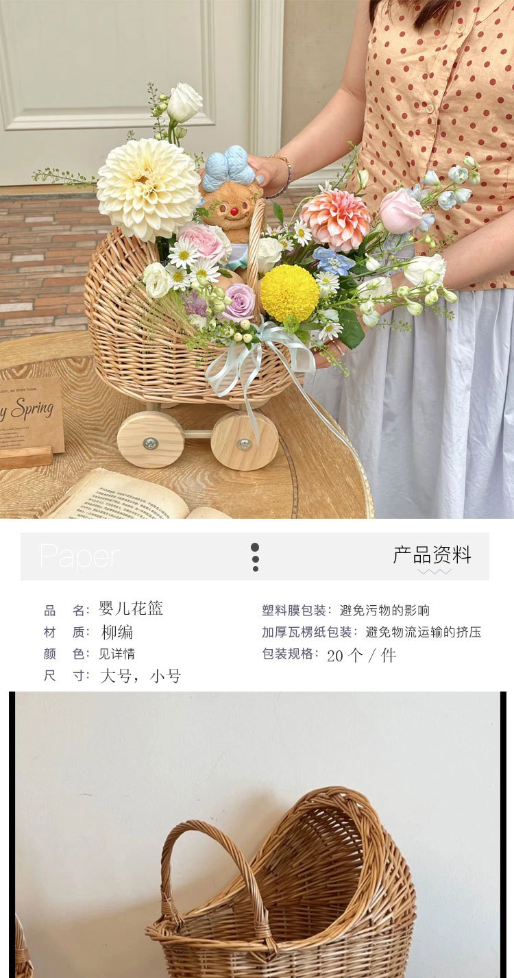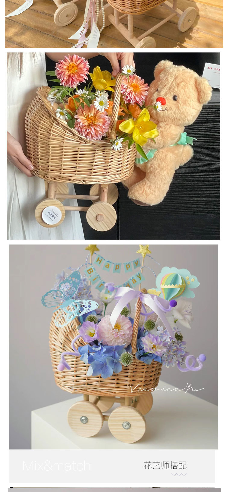 Cestas de huevos de la luna tejidas a mano, carrito de bebé, cestas de flores de sauce, cestas de flores de diseño de flores, cestas de flores DIY
