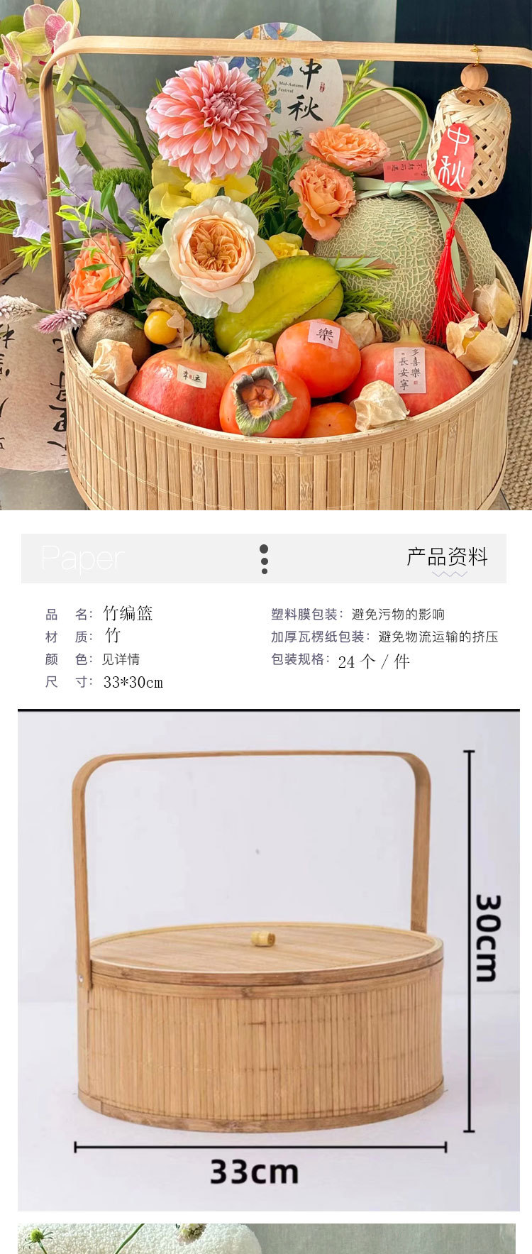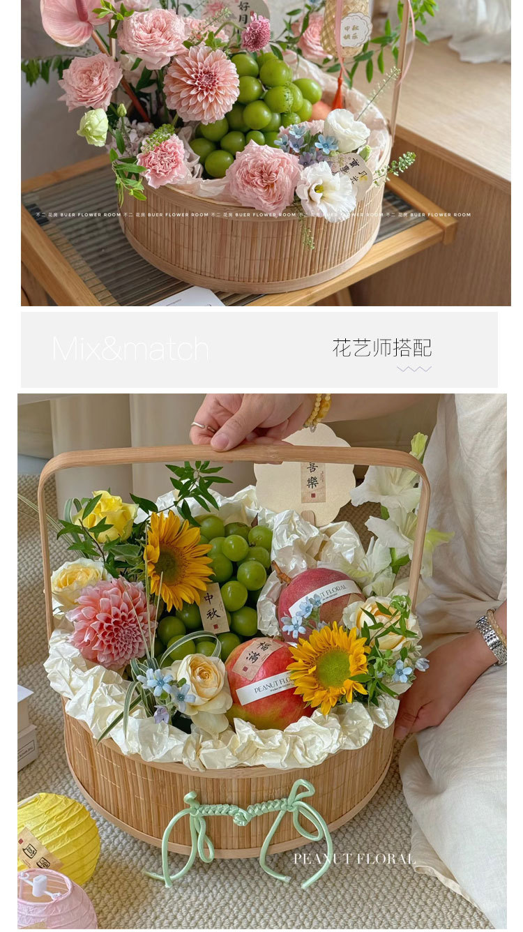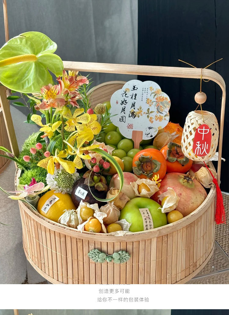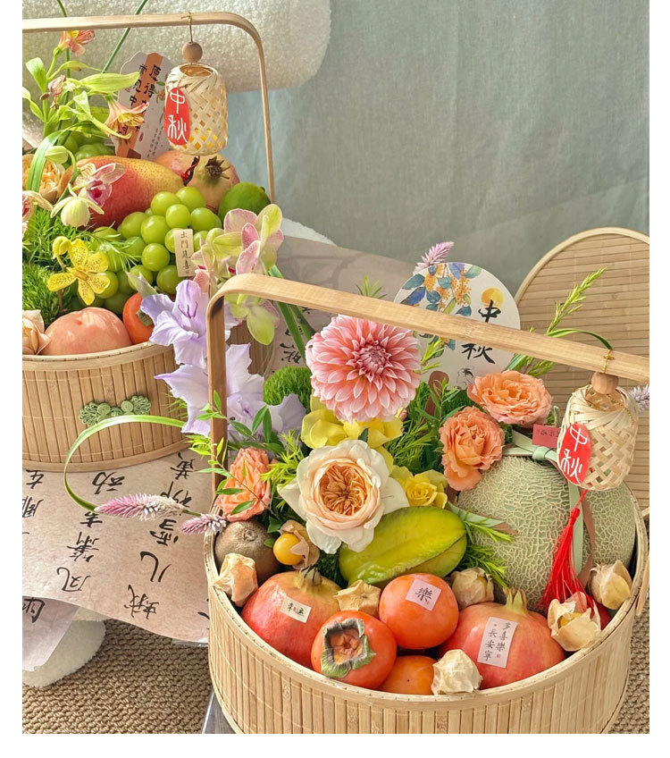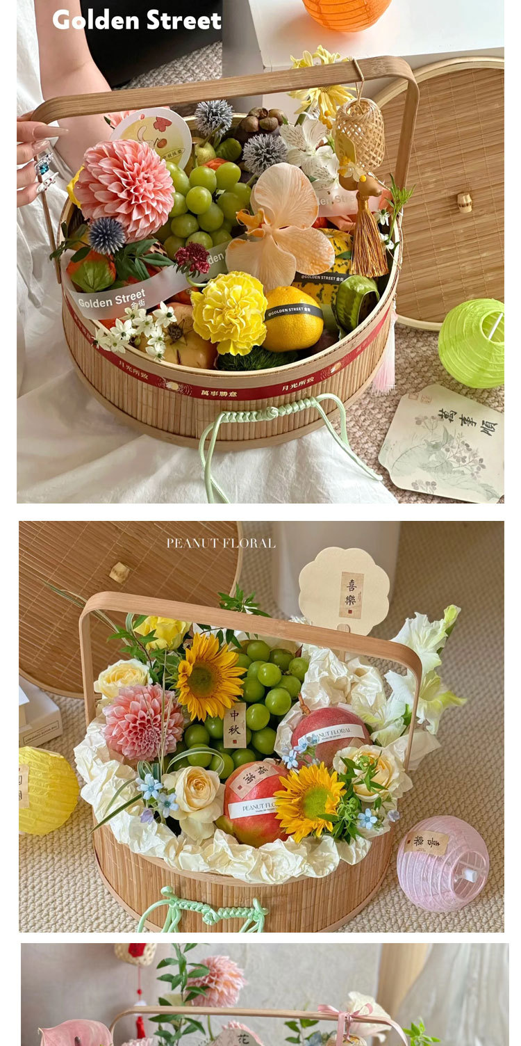 Festival del Medio Otoño, pastel de luna, bambú, canasta de flores, canasta de regalos, huevos, canasta de frutas, nueva canasta de flores portátiles chinas