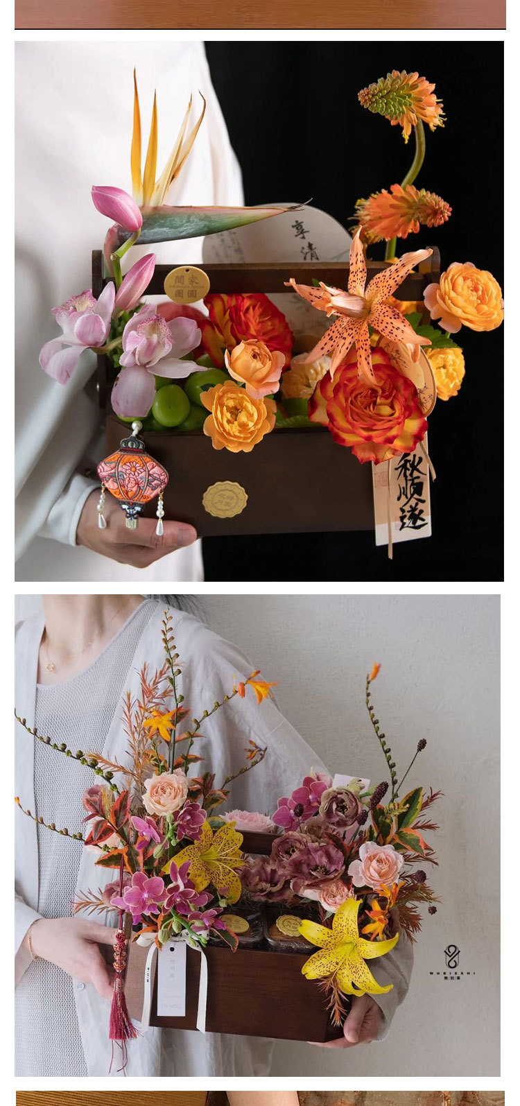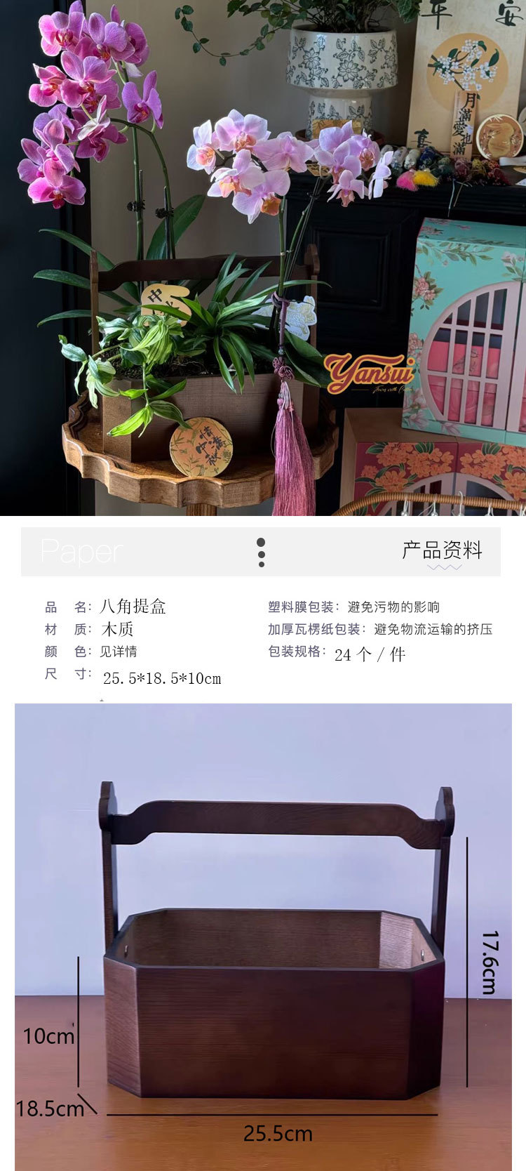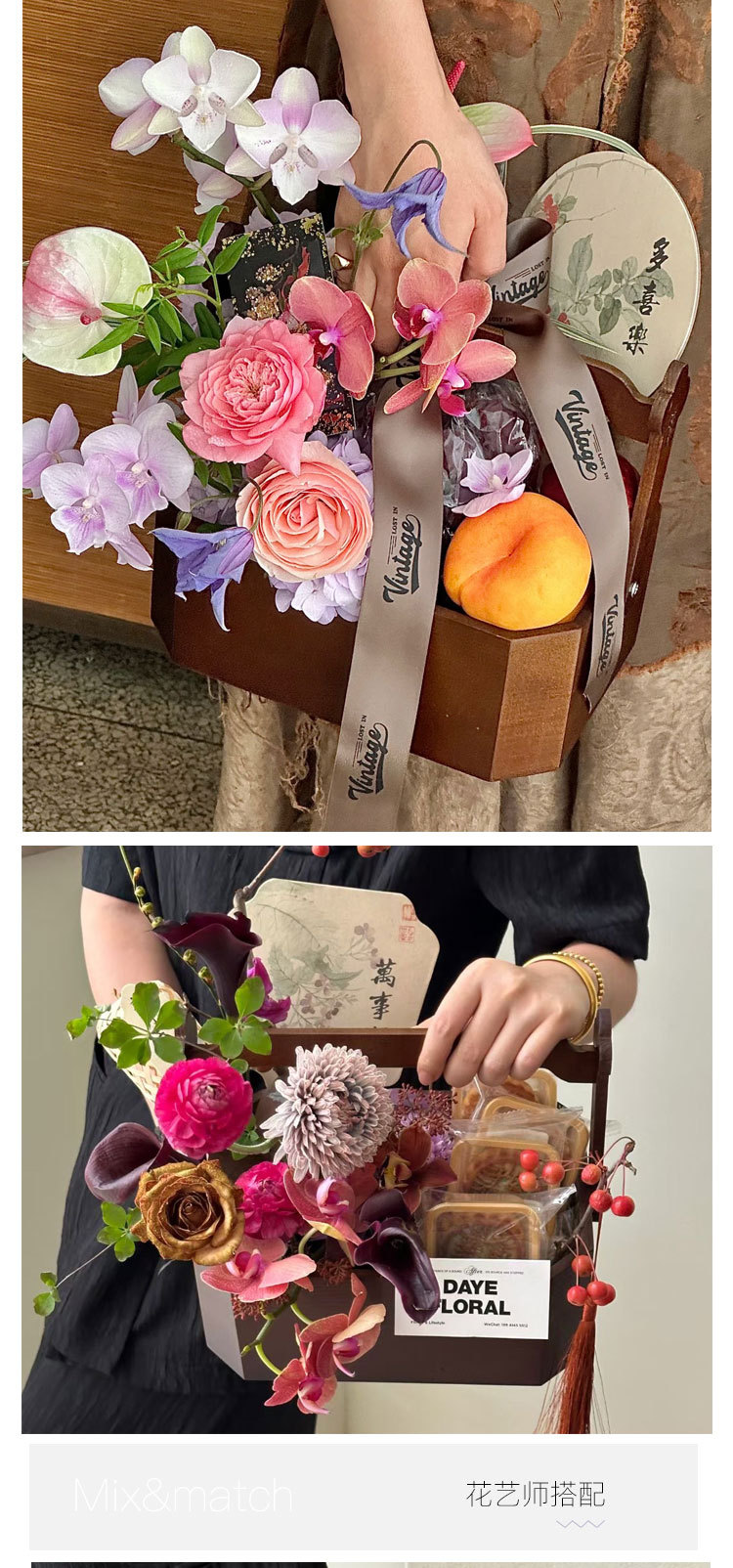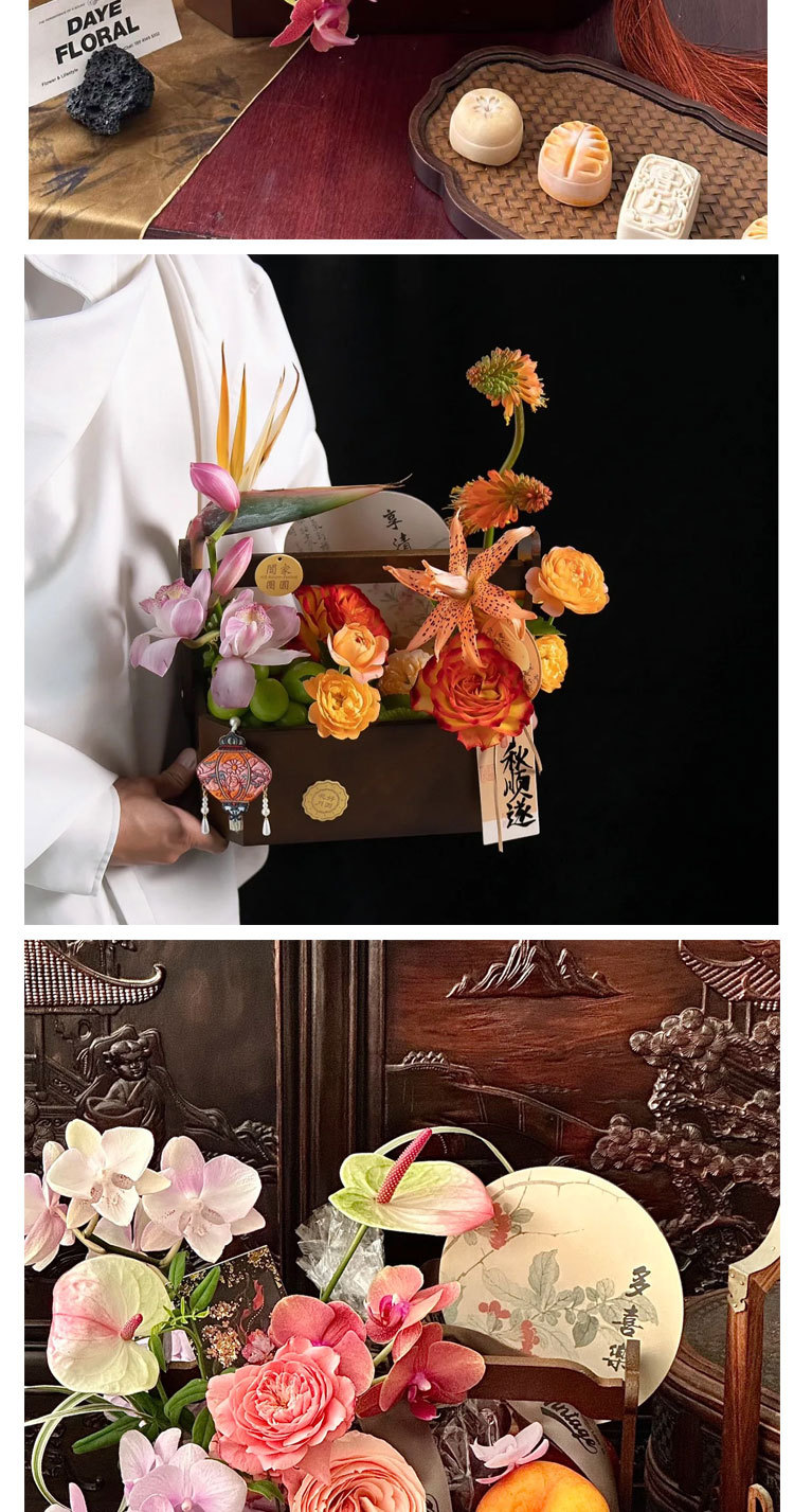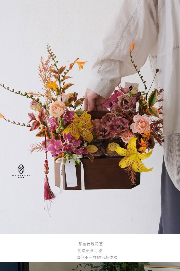 Festival del Medio Otoño Nuevo estilo chino retro caja de octogono Cesta de flores portátil flores pastel de luna caja de frutas floral caja de regalo floral