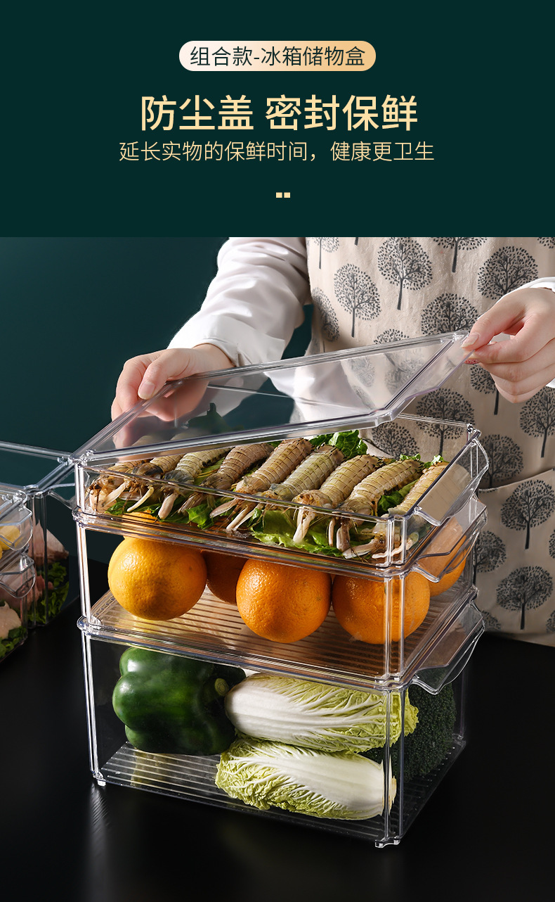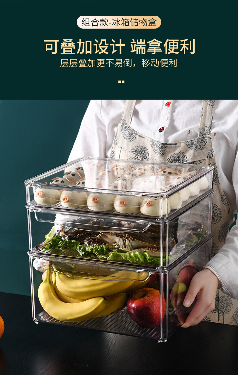Nuevo transfronterizo PET caja de almacenamiento de refrigerador caja de almacenamiento de grado alimenticio transparente drenaje tapa de flip caja de huevos caja de bolinillos