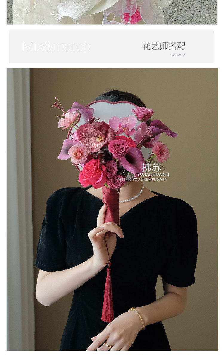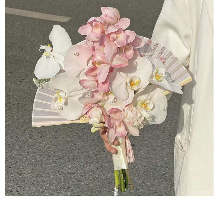 Nuevo estilo chino chino ramo de flores plegables de la novia mano de un ventilador de flores empaquetado de flores hechas a mano DIY material ventilador floral