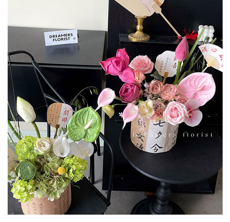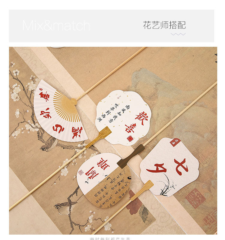 Milán nuevo estilo antiguo chino tarjetas de tarjetas de fiesta tarjetas de felicitación Fan caligrafía tarjetas de felicitación floral decoración tarjetas colgantes