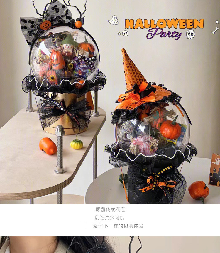 Accesorios ramo de Halloween calabaza bruja diadema acrílico bola abrazo cubo regalo hecho a mano DIY material
