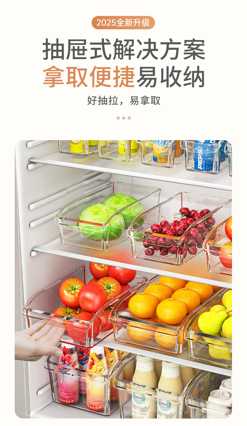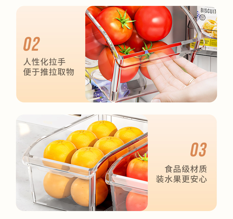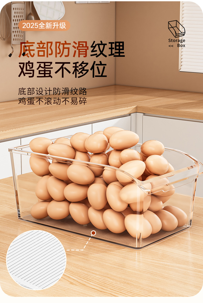 Caja de almacenamiento de refrigerador, cajón transparente de grado alimenticio con poleas, caja de almacenamiento de huevos, caja de drenaje para el hogar