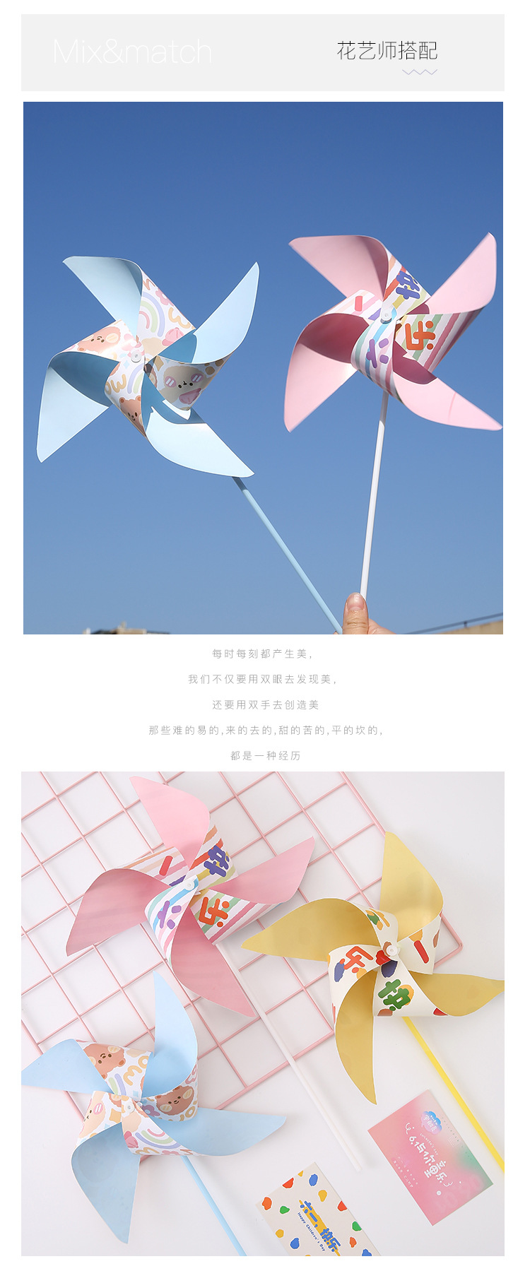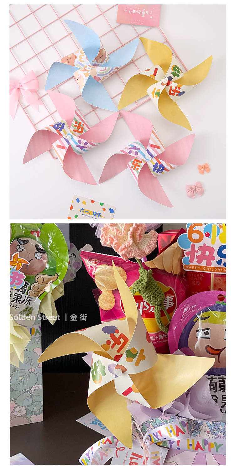 Regalo del Día de los niños tridimensional colorido molino de viento juguete hecho a mano material de bricolaje paquete flores ramo caja de regalo Decoración