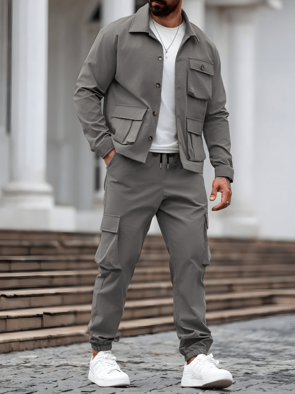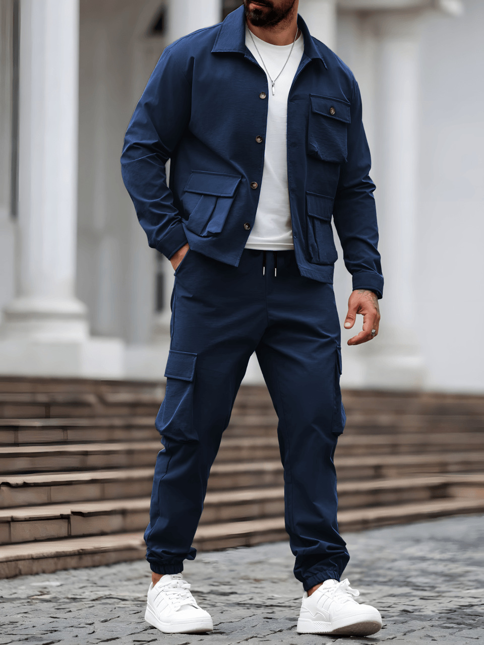 Chaqueta de trabajo de bolsillo para hombre primavera y otoño casual versátil Amazon AliExpress tendencia transfronteriza dos piezas
