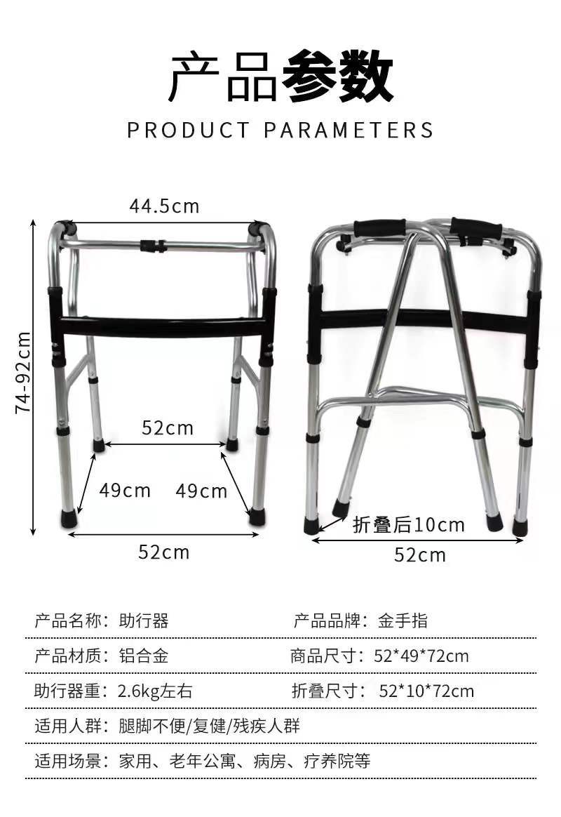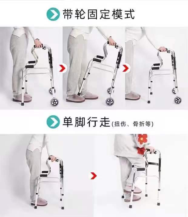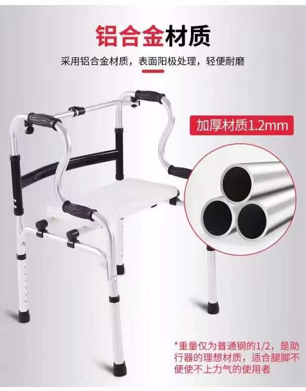Aleación de aluminio doblemente plegable caminador para ancianos caminador de rehabilitación para discapacitados refuerzo de entrenamiento de extremidades para pacientes