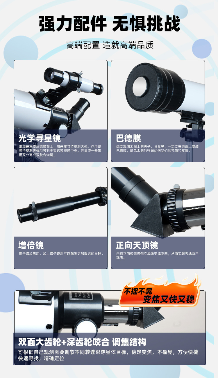 Fabricante al por mayor telescopio de observación de estrellas profesional de alta definición de observación de la luna regalos para niños 30070 telescopio astronómico