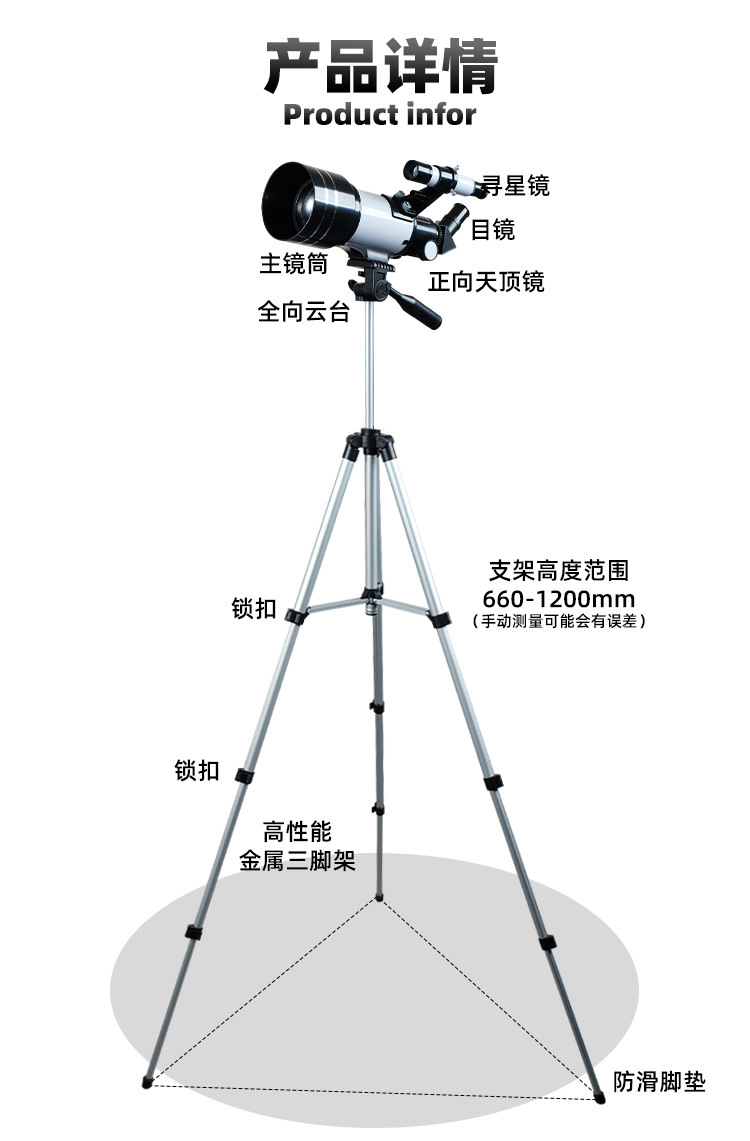 Fabricante al por mayor telescopio de gran apertura al aire libre profesional de observación de estrellas y observación de la luna de alta definición F30070 telescopio astronómico