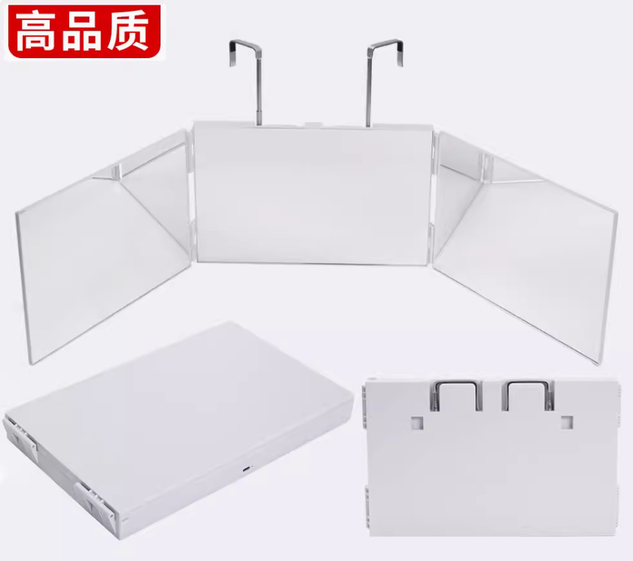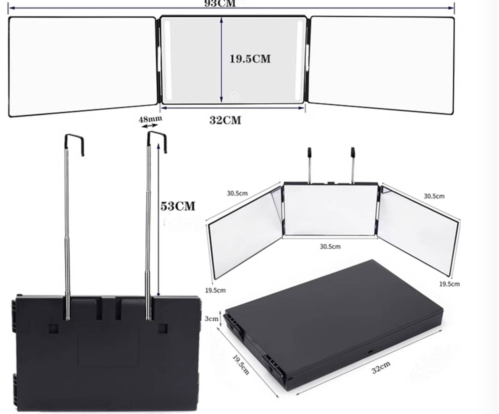 Espejo de tres lados para ver la parte posterior de la cabeza al aire libre cabello de maquillaje auto-tinción de cabello de corte de pelo espejo retrovisor soporte artefacto lámpara plegable