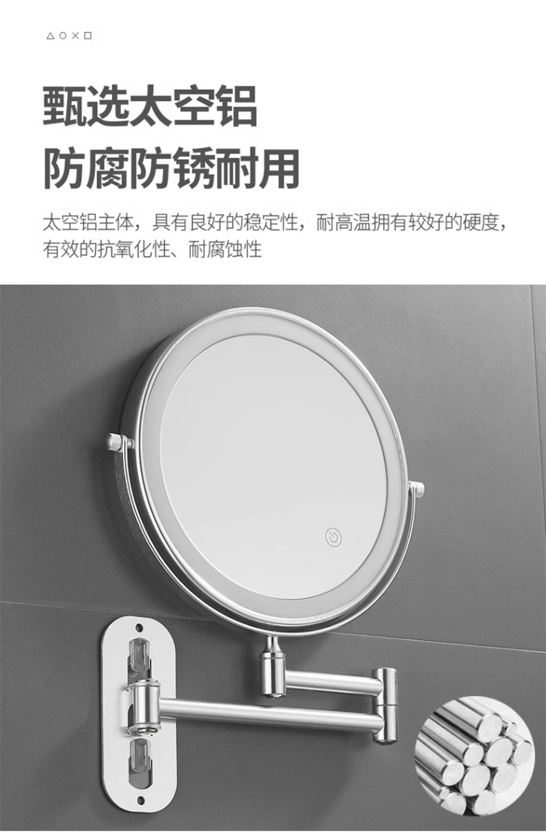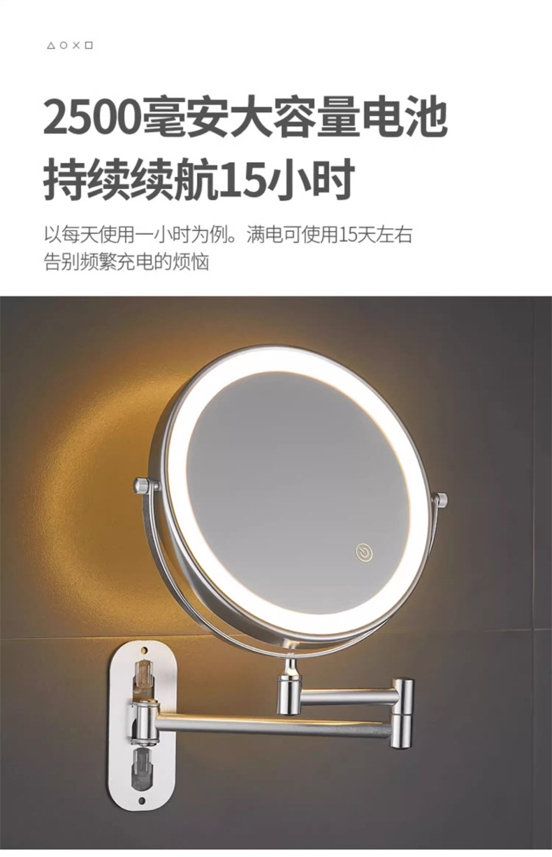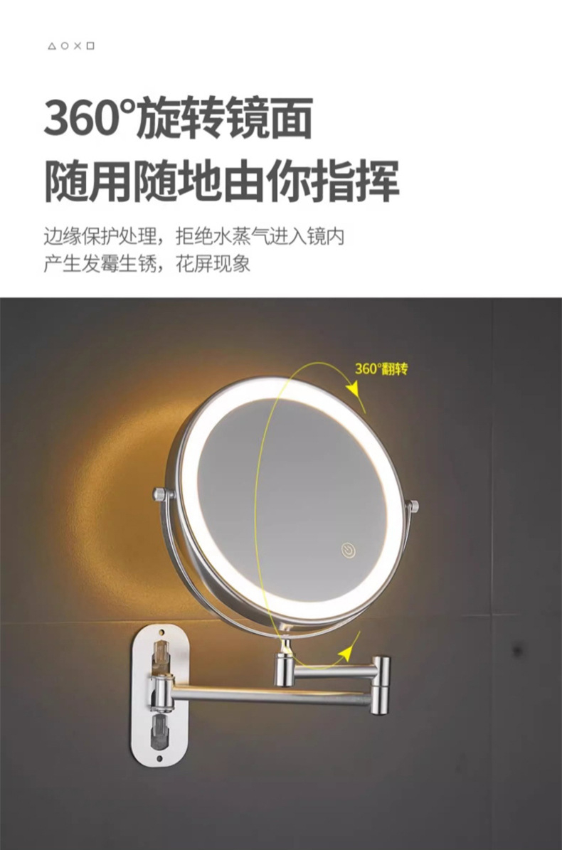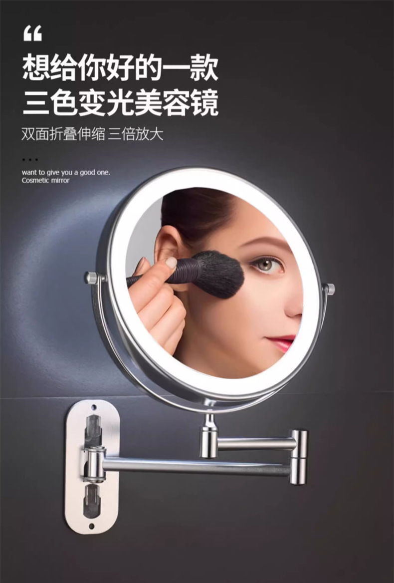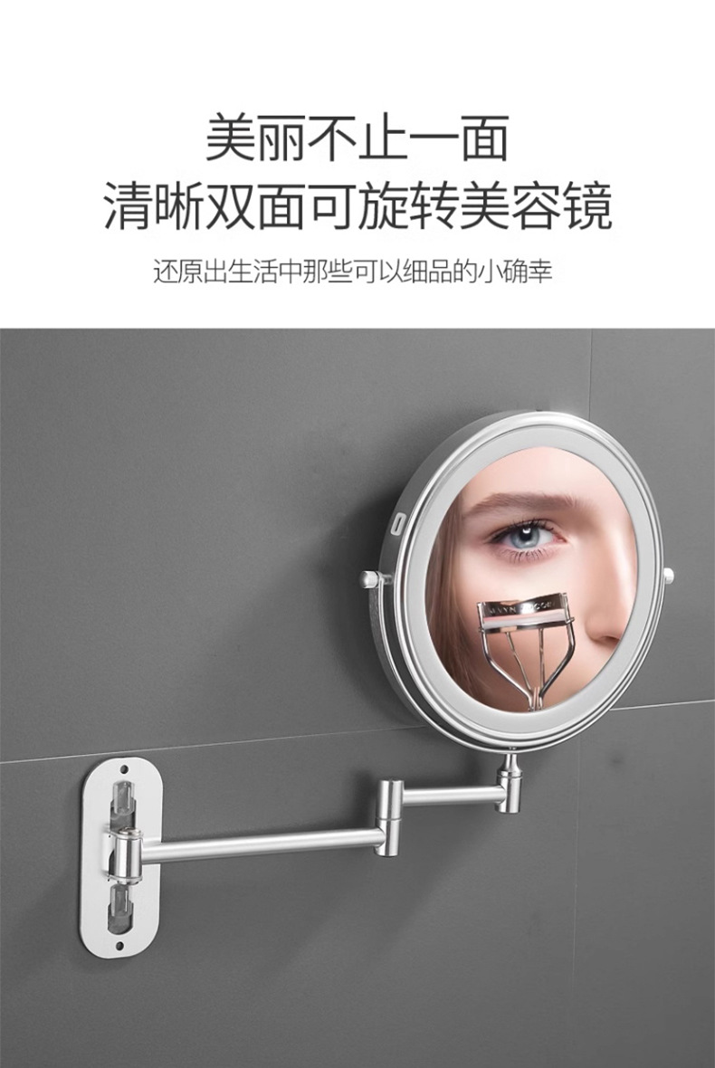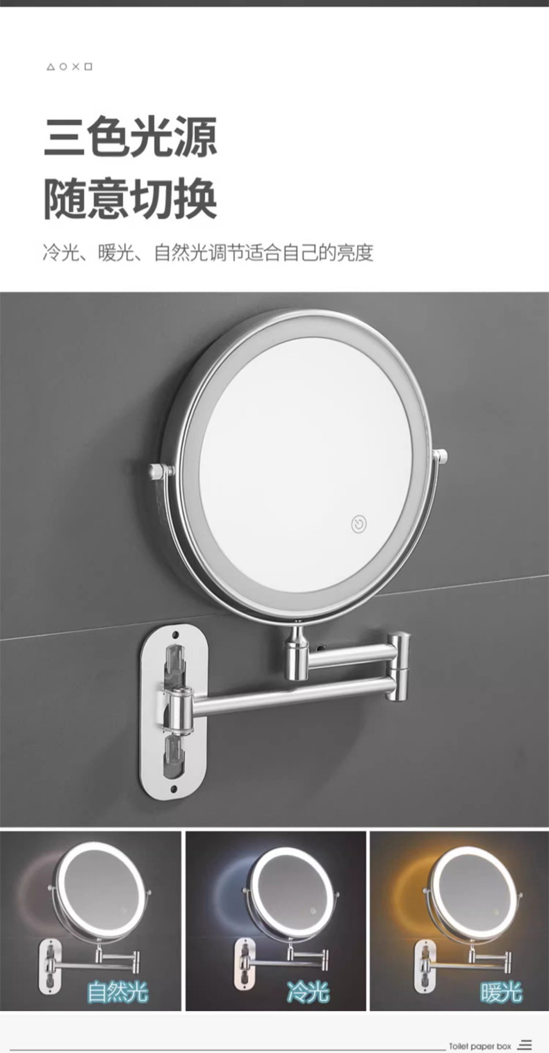 Espejo de maquillaje de baño LED con lámpara de belleza de pared de baño espejo telescópico plegable de hotel espejo de doble cara