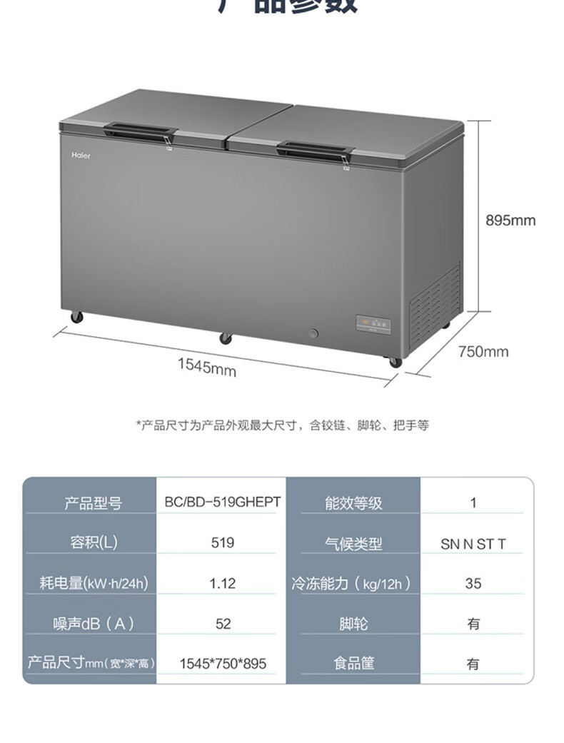Haier / Haier congelador BC / BD - 519GHEPT 519 litros de gran capacidad congelador supermercado congelador de almacenamiento comercial