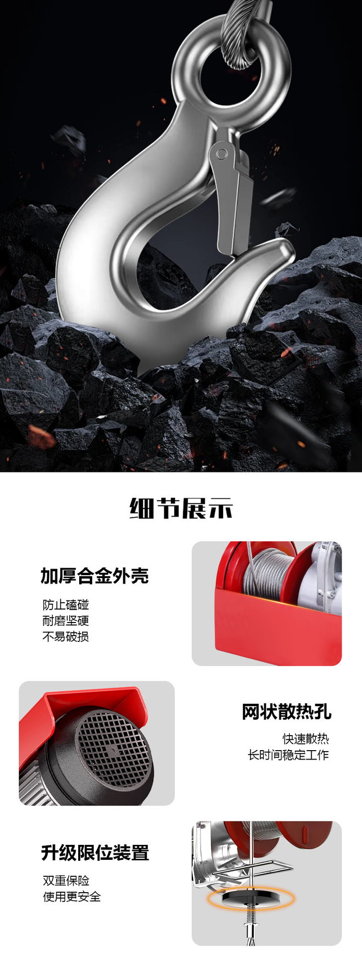 Mini elevadora eléctrica 220v doméstica control remoto inalámbrico pequeña grúa de una tonelada pequeña elevadora cables de acero cabrestante