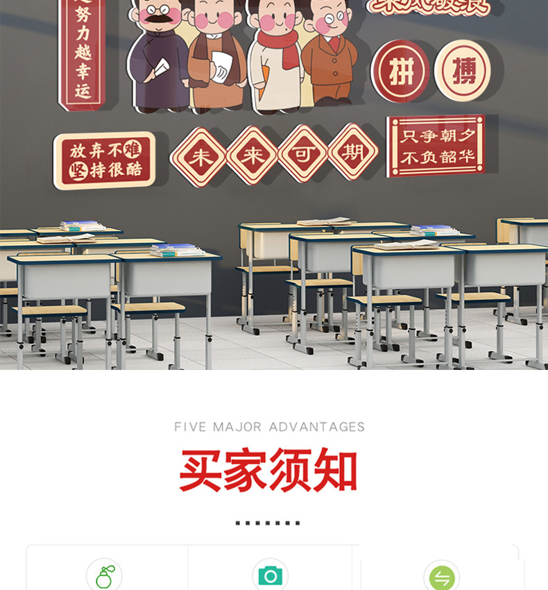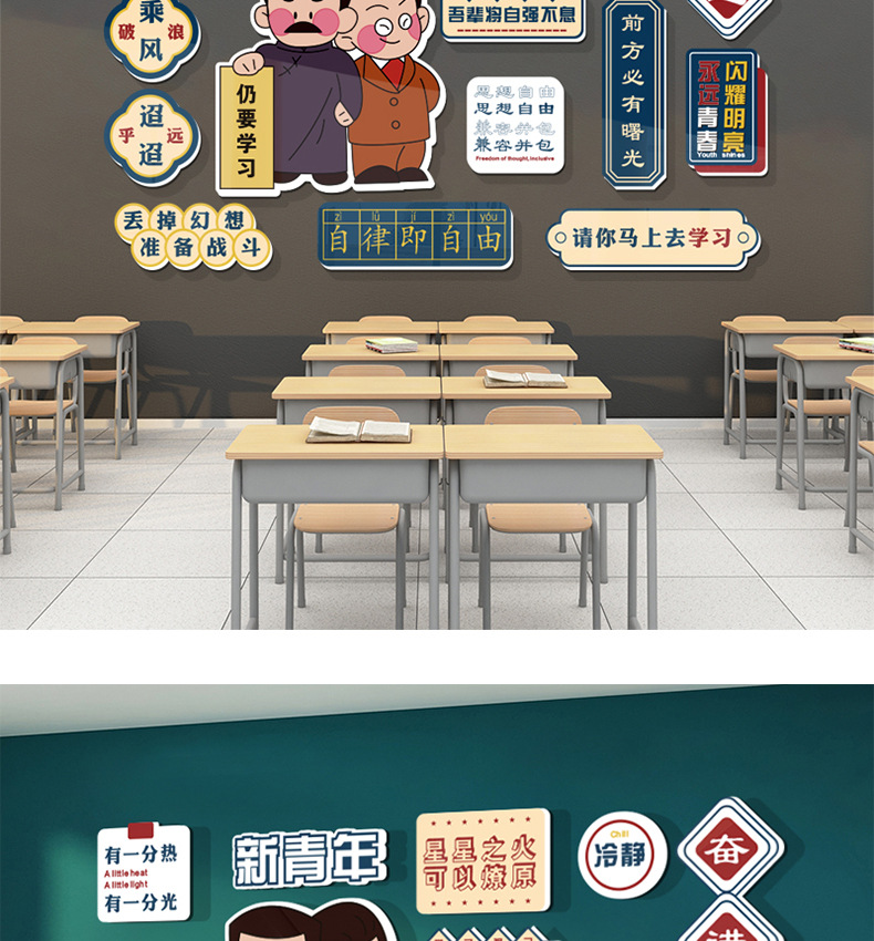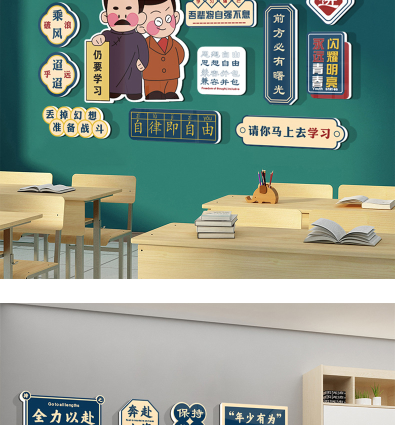Diseño de aula decorado artefacto de clase de cultura pegatinas de pared de escuela primaria eslogan inspirador de construcción de escuela secundaria