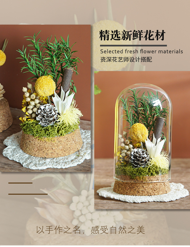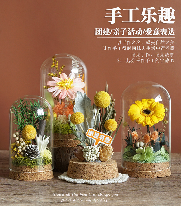 Flor inmortal DiDi material paquete de flores secas cubierta de vidrio adornos hechos a mano salón grupo de construcción del día de la madre regalo del día del niño