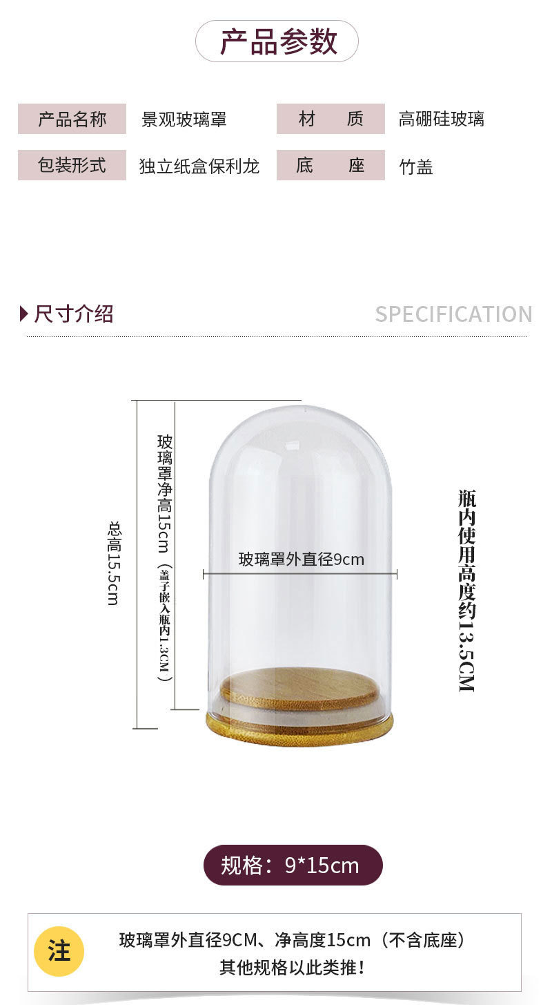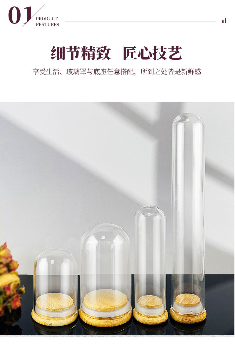 Flores secas cubierta de cristal de flores inmortales DIY mano caja ciega muñeca exhibición cubierta de antigüedad brazalete cubierta de bambú sellado cubierta de polvo