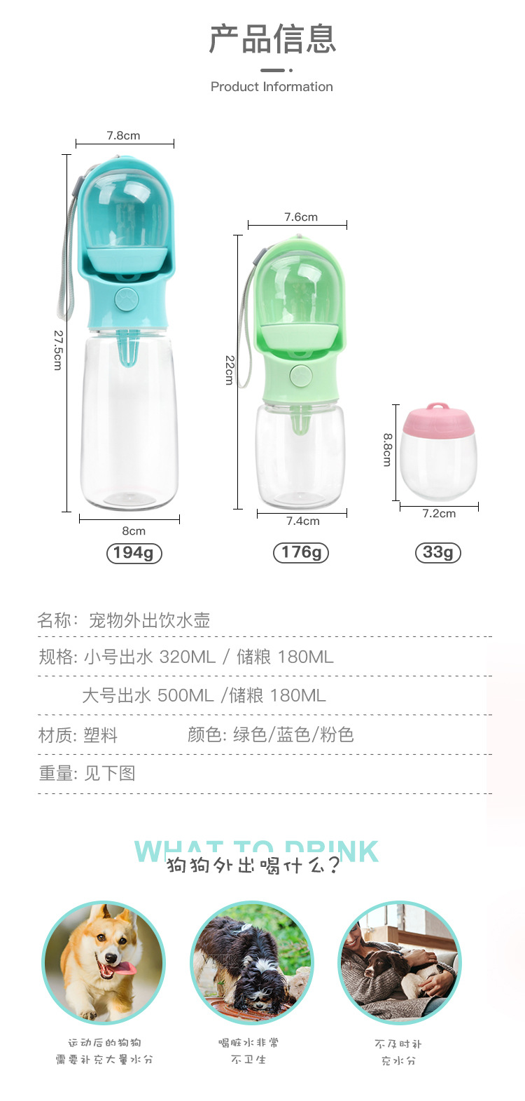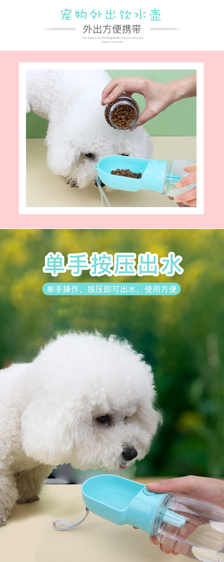 Botella de agua potable para perros, botella de agua portátil para caminar al aire libre, taza de acompañamiento para perros, suministros para alimentación de mascotas, venta al por mayor