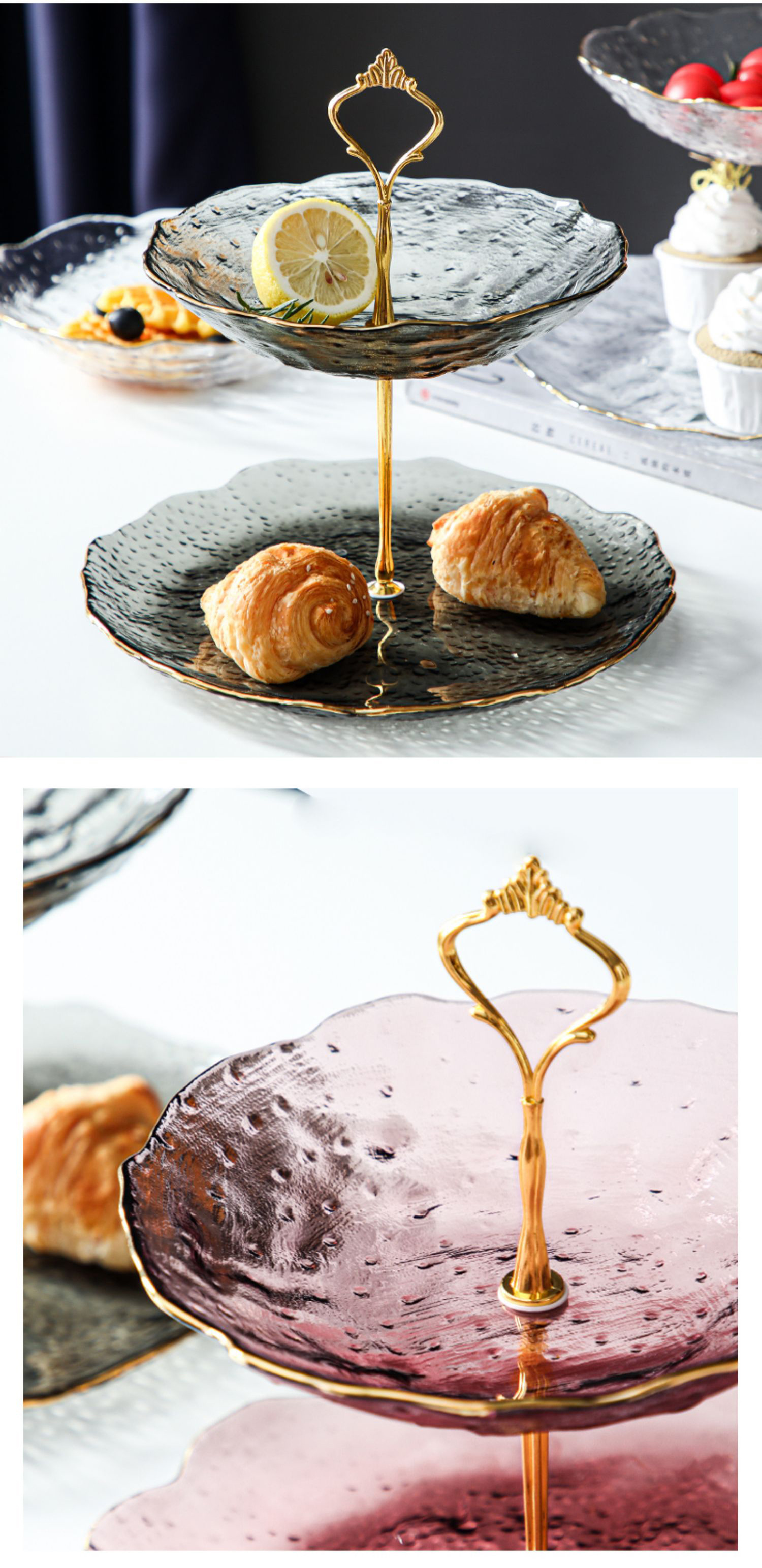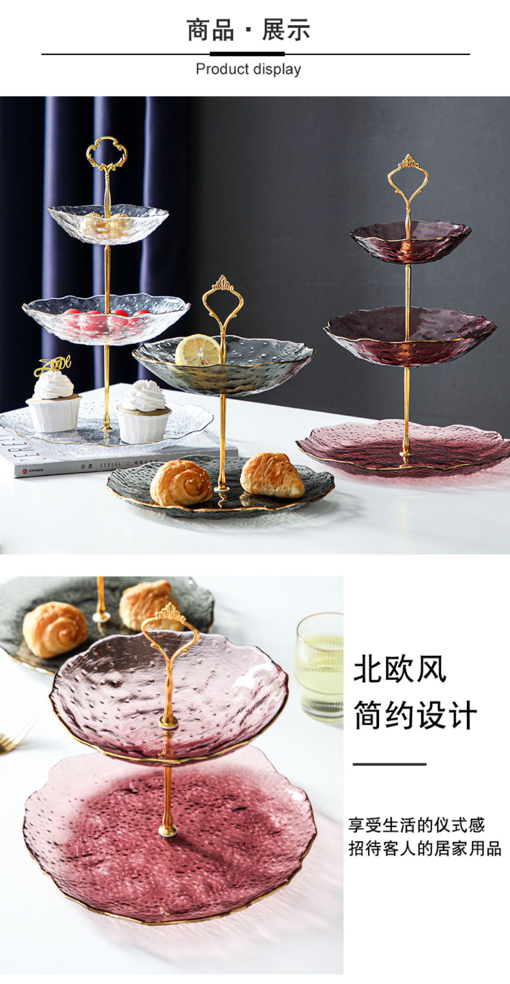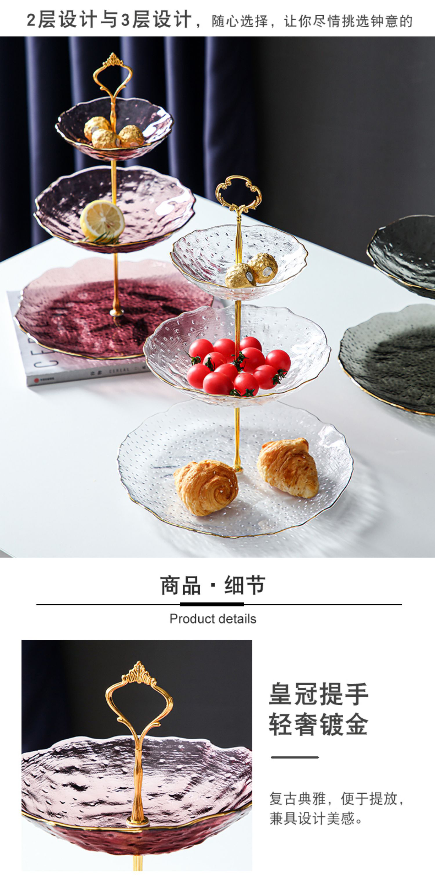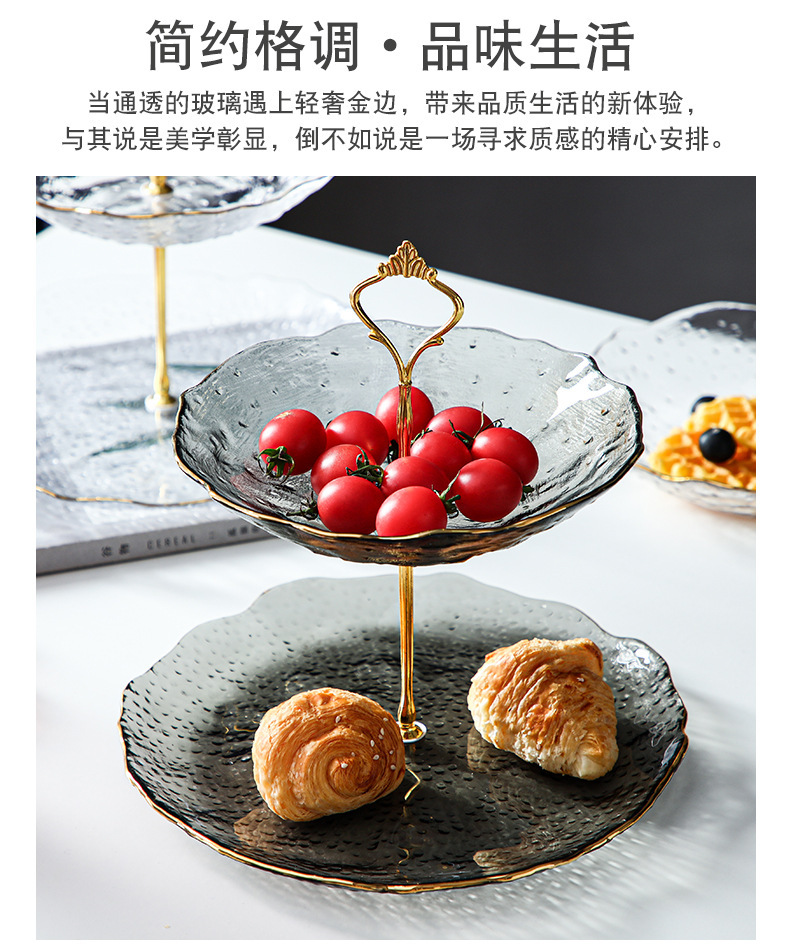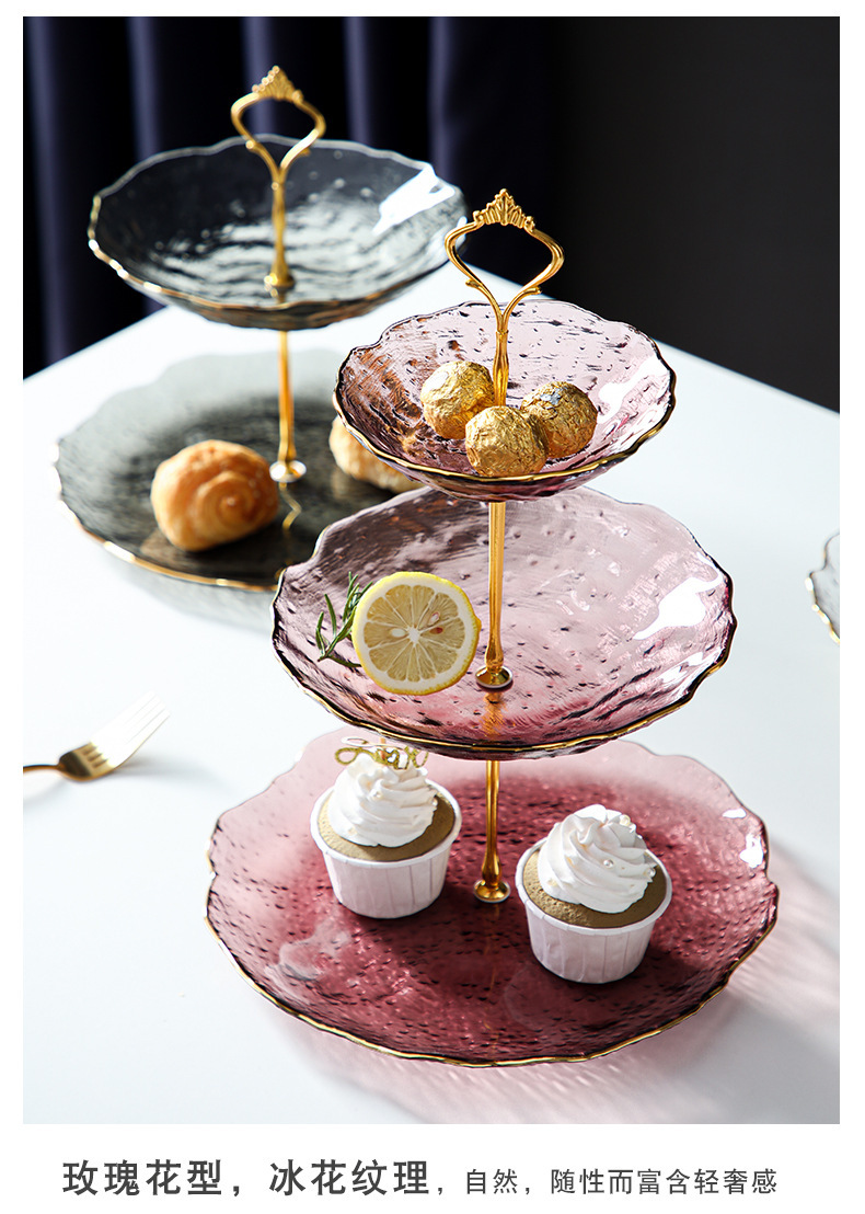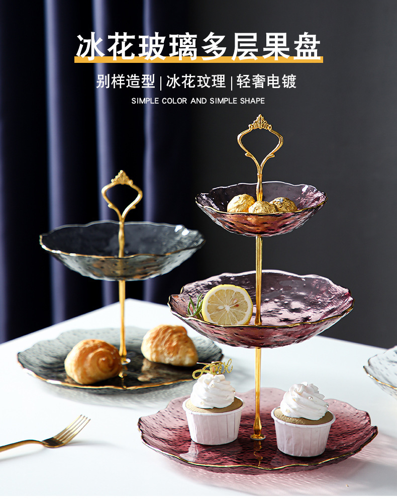 Lujo ligero Viento Phnom Penh vidrio de tres capas de frutas bandejas de alta calidad creativas dulces caseras pastel snack bandejas al por mayor