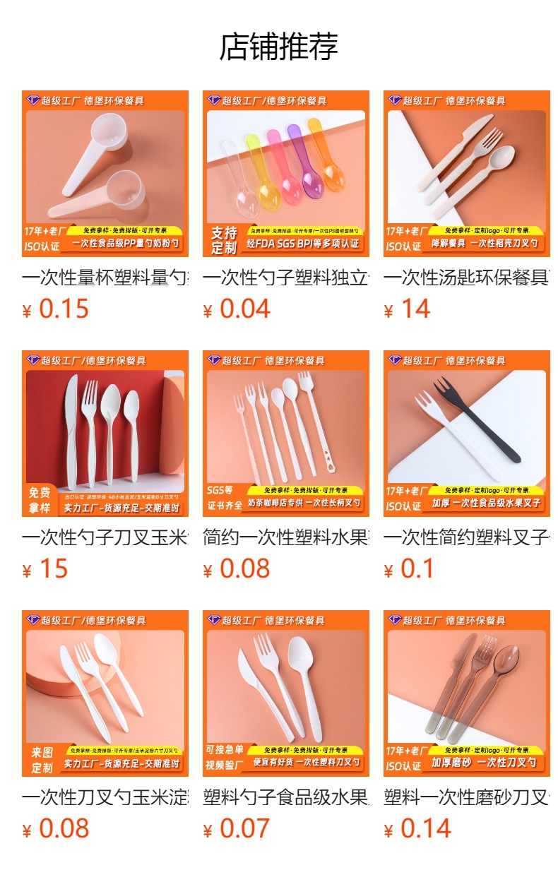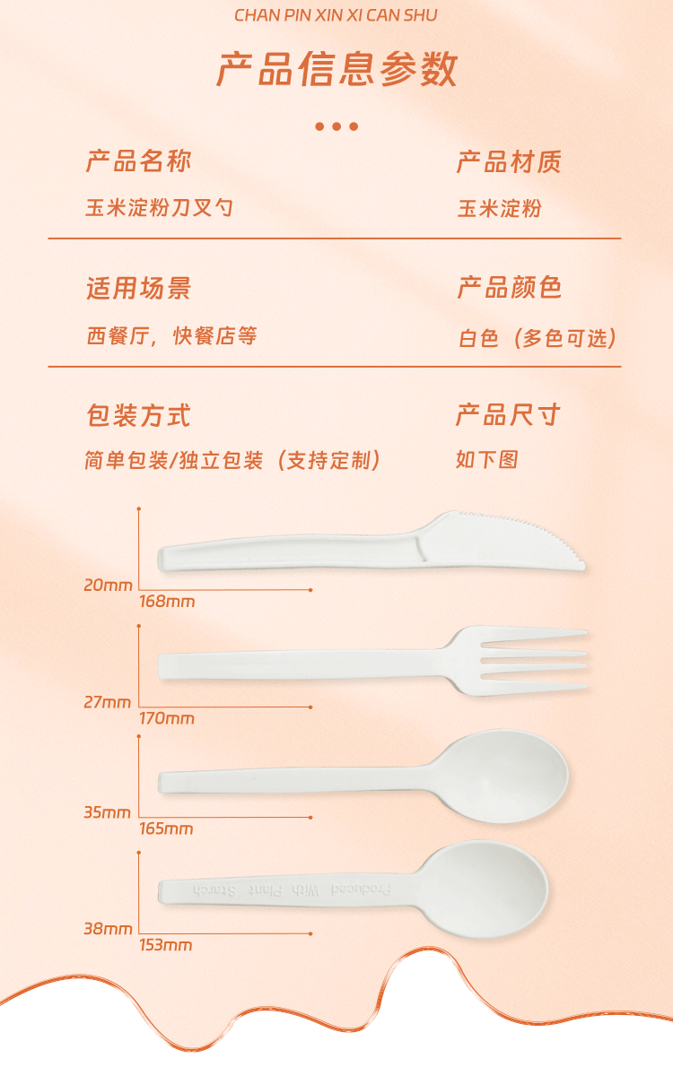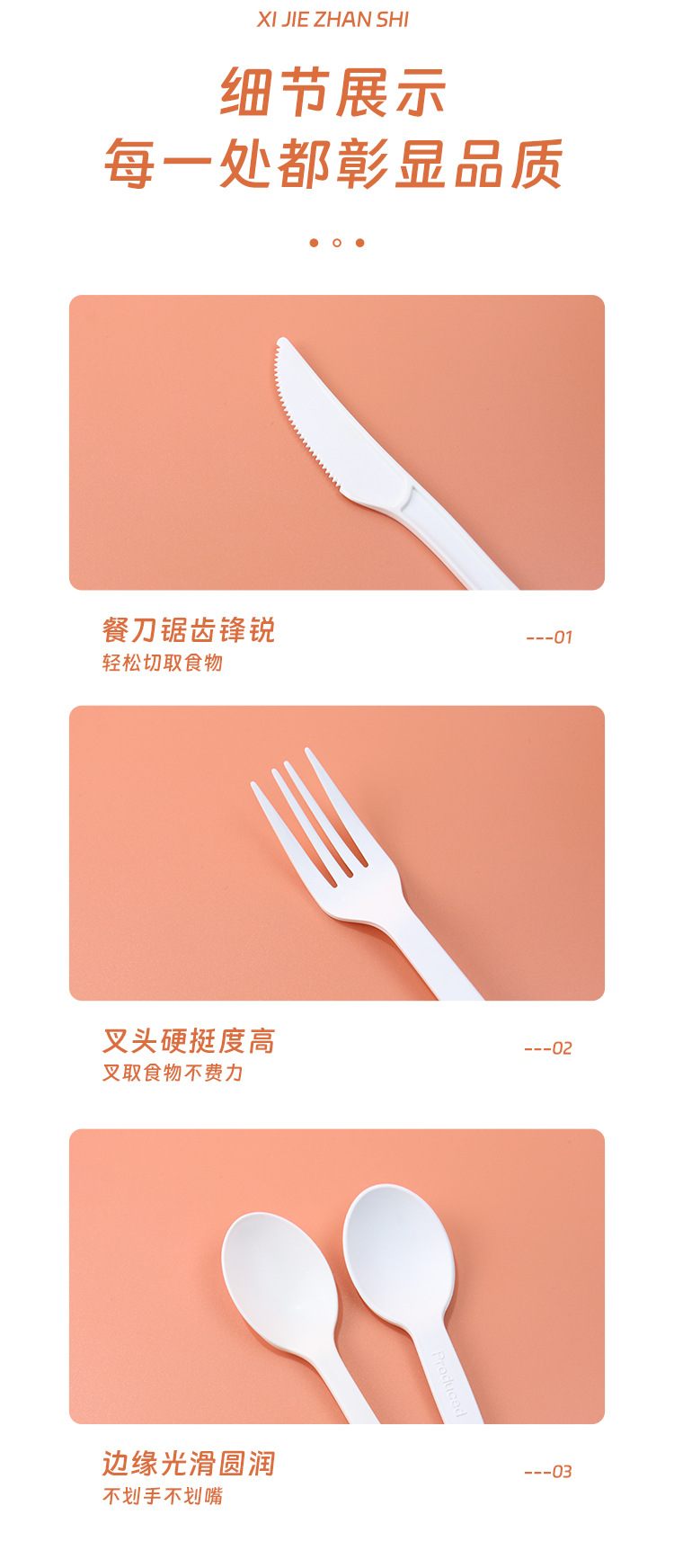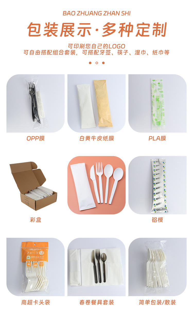 | Vajillas, cubiertos, tenedores y cucharas respetuosos con el medio ambiente. | Comida occidental, postres, comida china, cubiertos, tenedores y cucharas para llevar. |