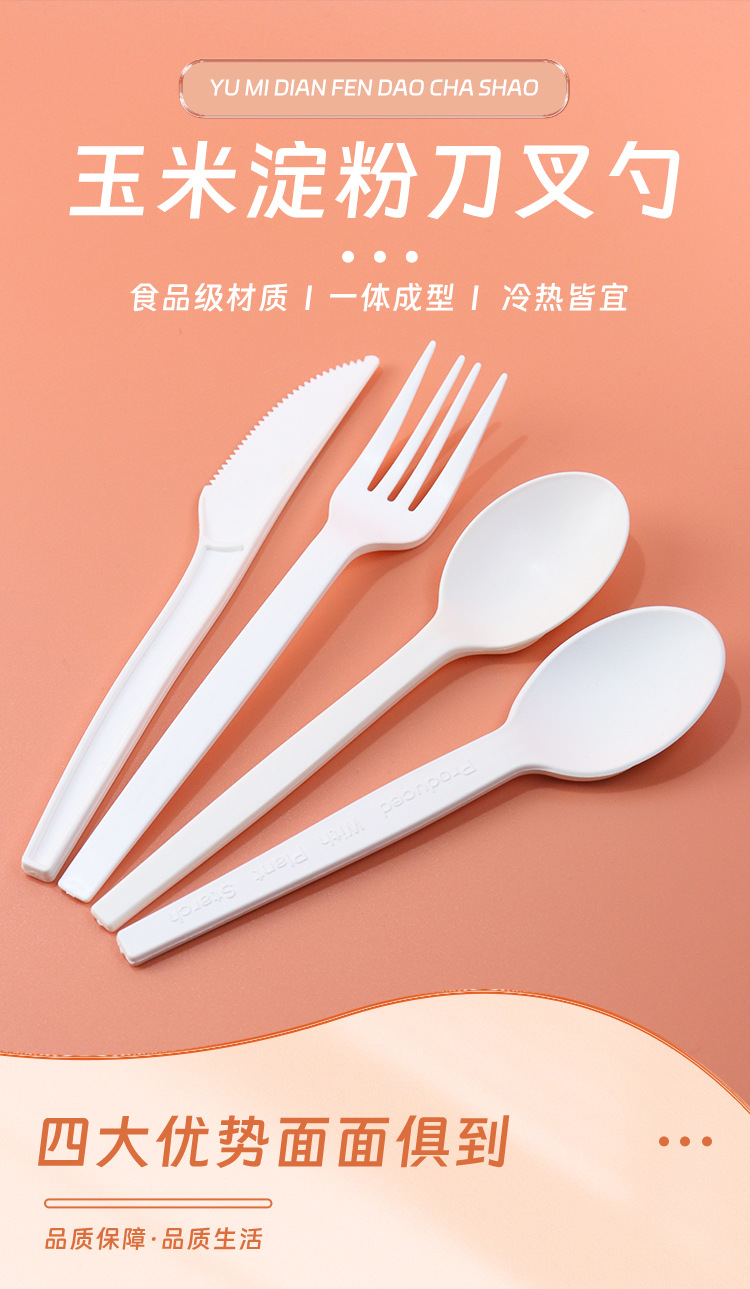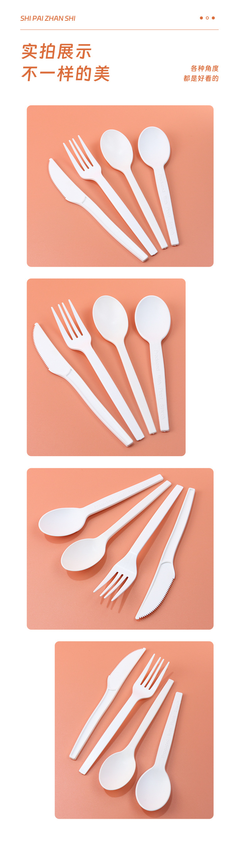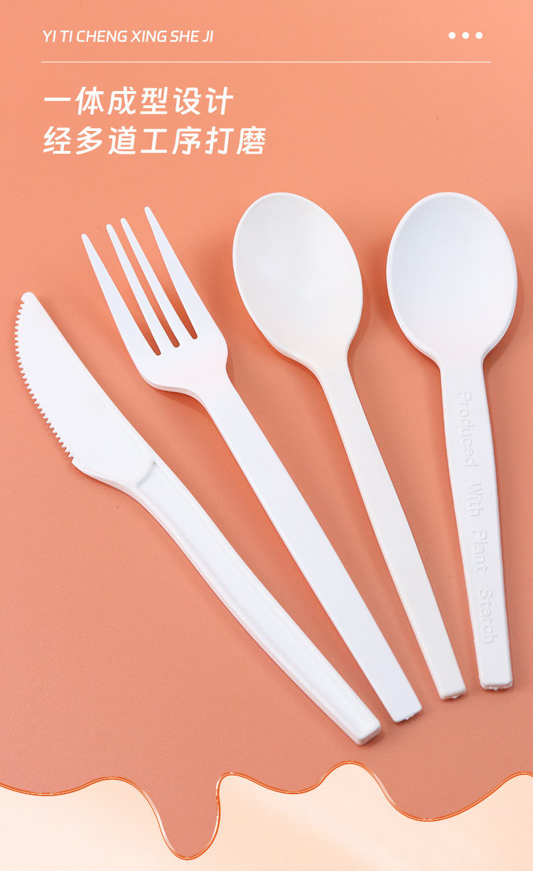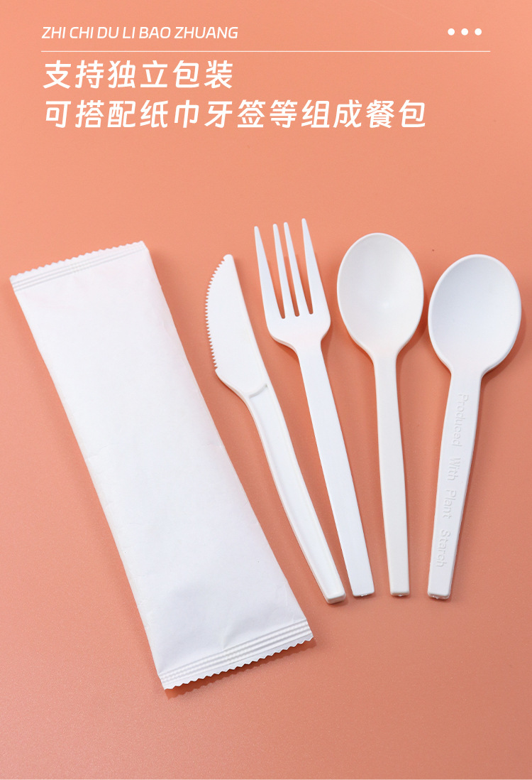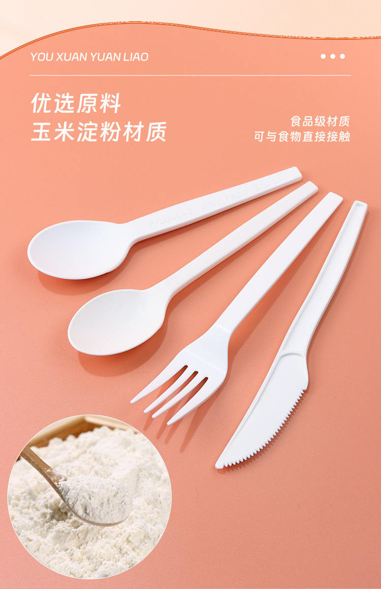Cuchara desechable cuchillo y tenedor Tenedor de almidón de maíz grado alimenticio al por mayor cuchara de postre vajilla degradable de alimentos occidentales