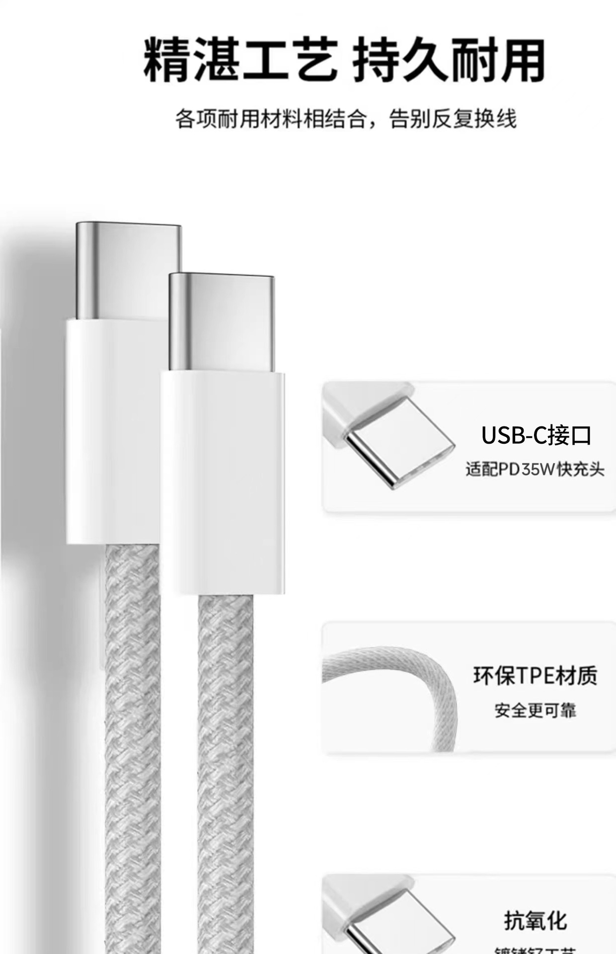 [Conjunto] Cabeza de carga rápida de 35W 1 metro de alambre trenzado doble C