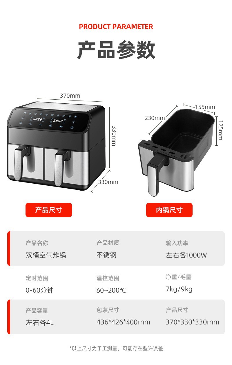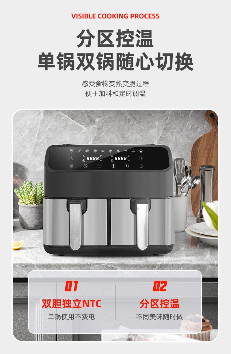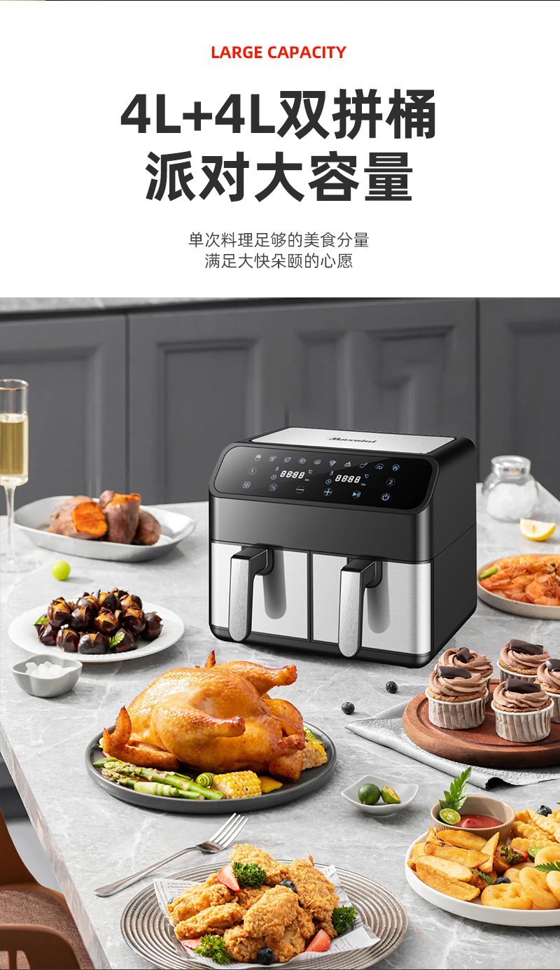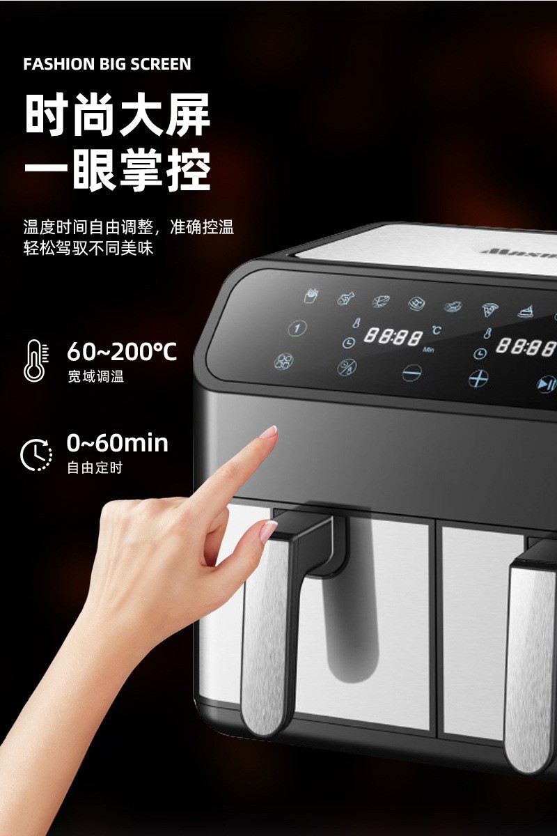Freidora de aire transfronteriza doméstica multifuncional de doble silo 8L freidora eléctrica de gran capacidad, horno eléctrico inteligente de papas fritas, OEM