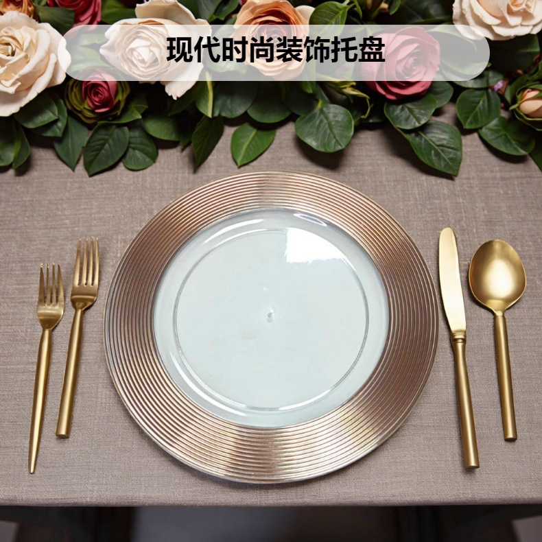Ventas calientes transfronterizas placas de carga europeas fiesta banquete de boda restaurante occidental alta transparencia decoración placas de trabajo