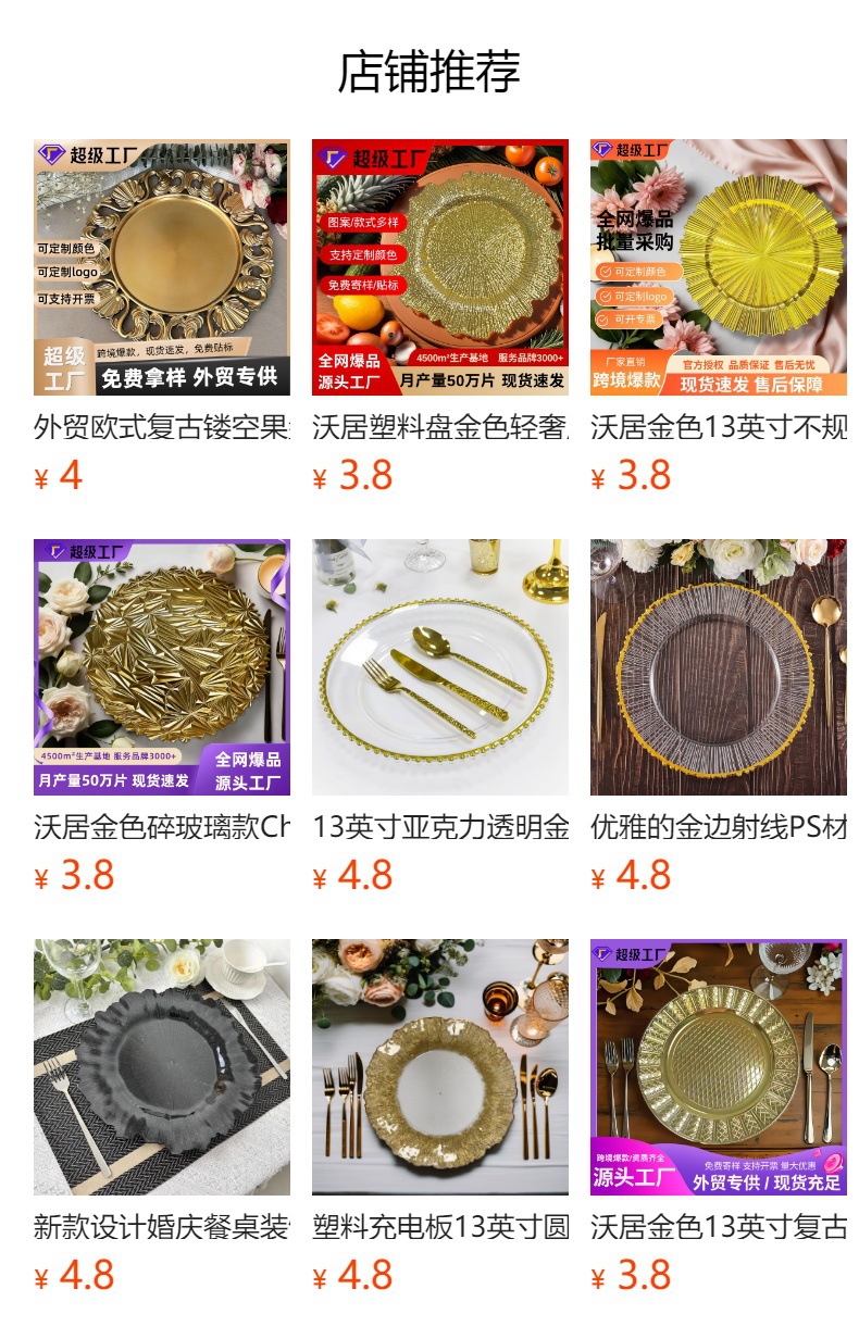 Comercio exterior boda hotel fiesta fiesta plástico decoración plato de comedor desechable placa de carga