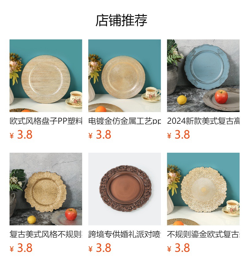 2024 nuevo estilo europeo retro platos de fruta platos de banquete platos de bodas platos chargerplates decoración