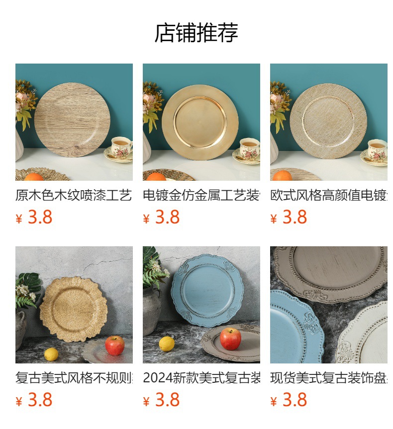 Plato de estilo europeo material PP plato de plástico textura al por mayor plato de boda hotel resumen comercio exterior se puede configurar postres