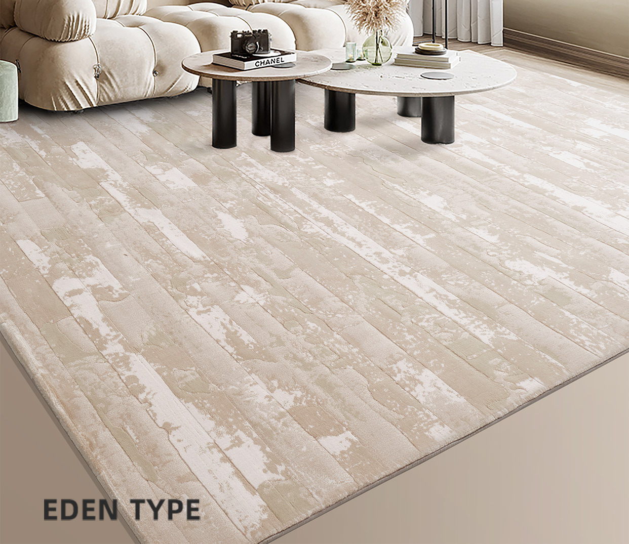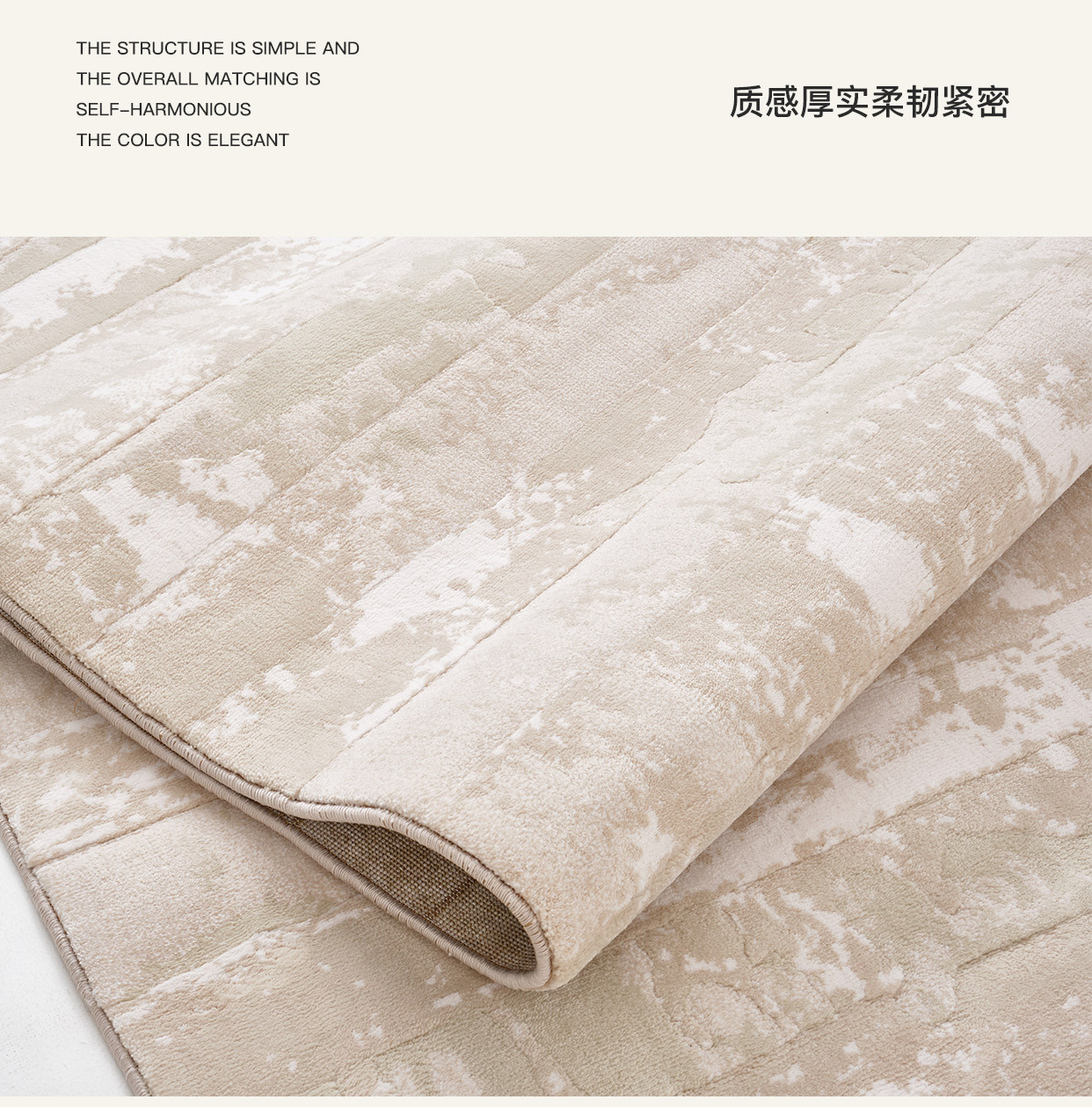 Alfombra estilo crema para sala de estar, modelo 2025, color liso, impermeable, resistente a las manchas, tacto de alta gama, antibacteriana, antiácaros, cobertura completa de gran área.