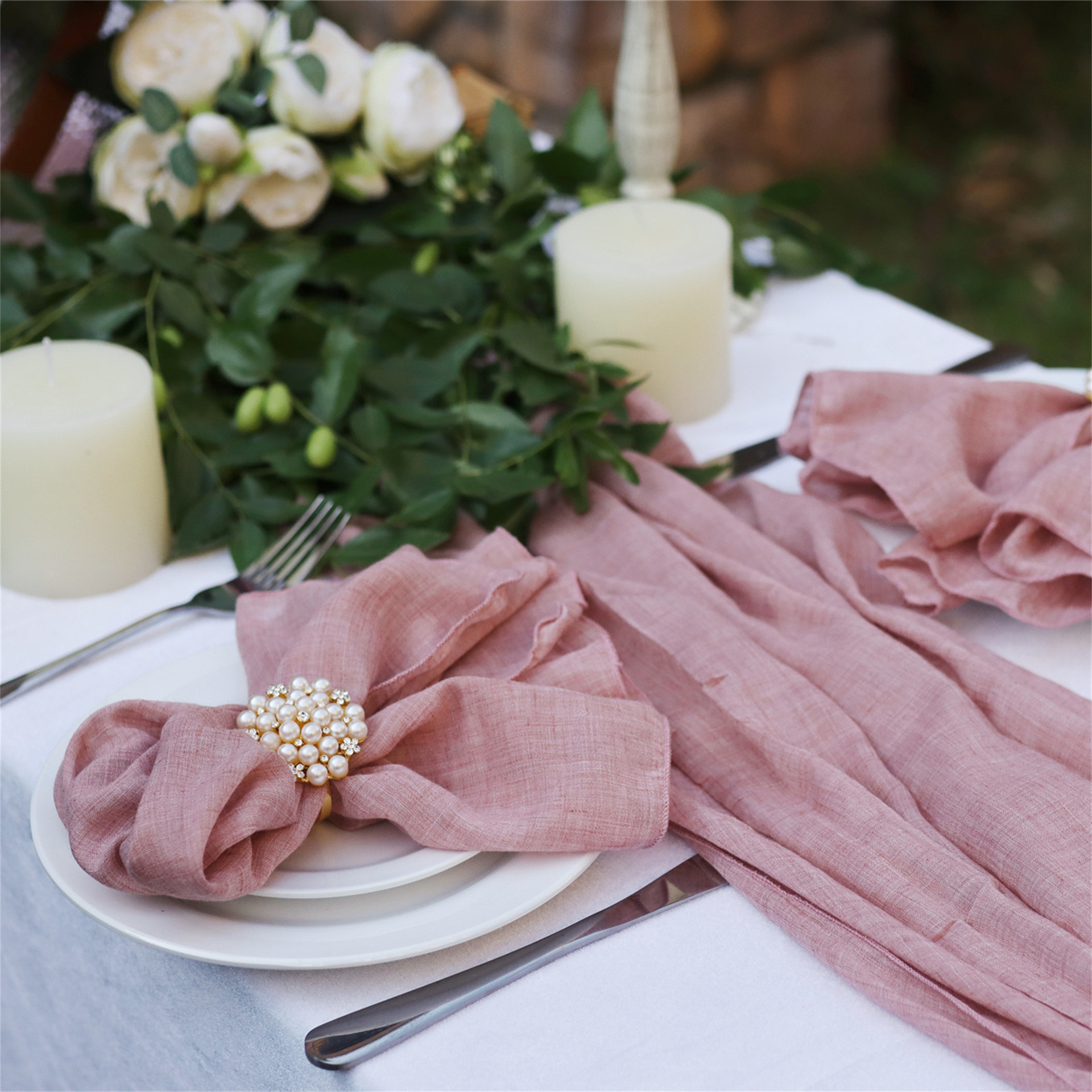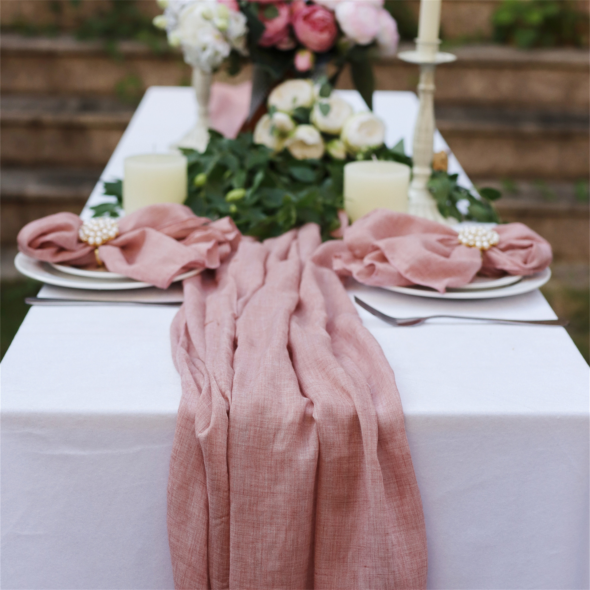 Paño de la servilleta Amazon poliéster algodón crepe tela de seda mantel corredor de la Mesa de la boda paño de la boca decoración del partido del hotel toalla de té