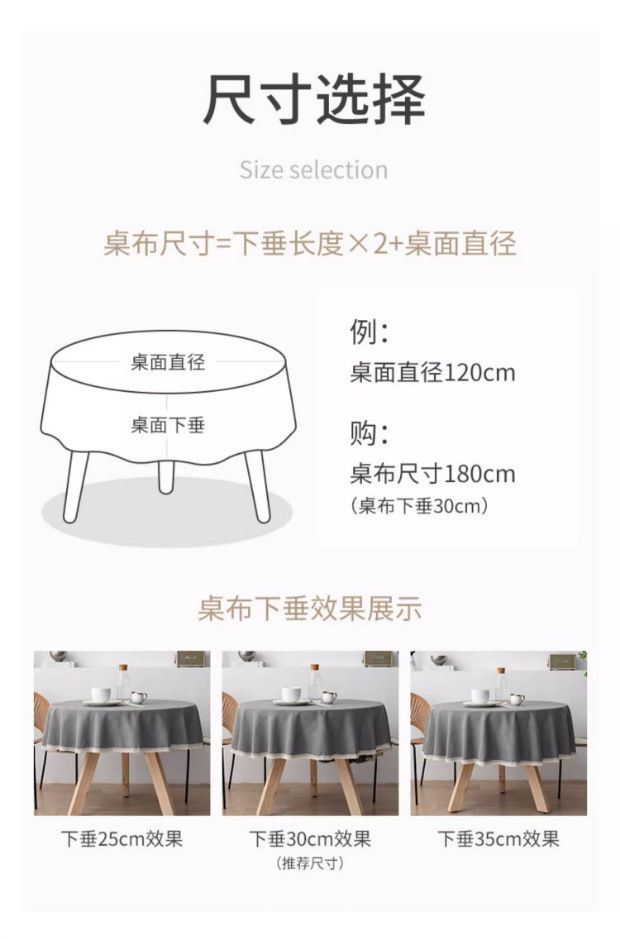 Diámetro 160cm (recomendado 100 ~ 110 diámetro mesa redonda)
