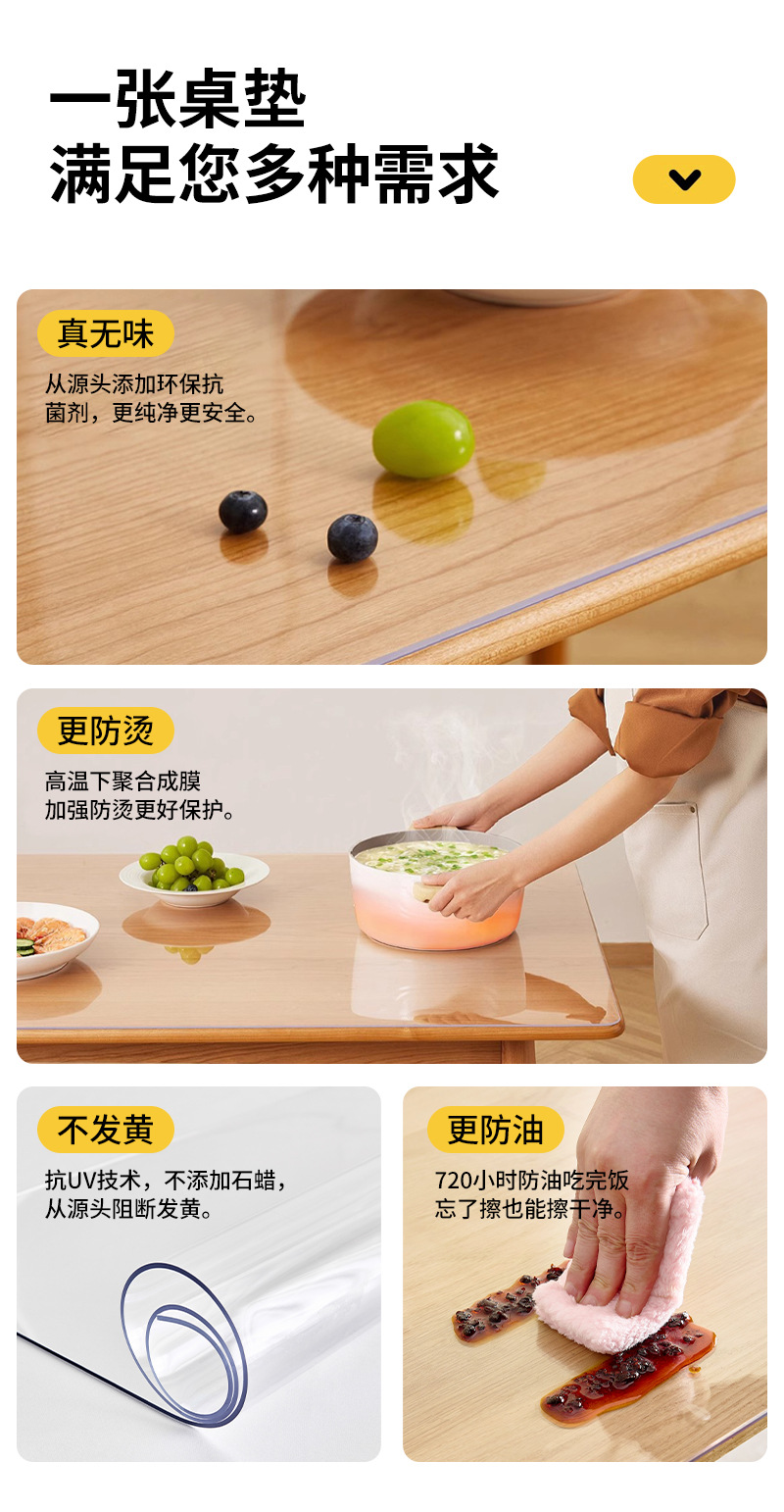 Cojín de mesa de vidrio blando redondo PVC transparente impermeable a prueba de agua a prueba de aceite a prueba de quemaduras cojín de mesa de té sin lavabo cojín de mesa de estudiantes