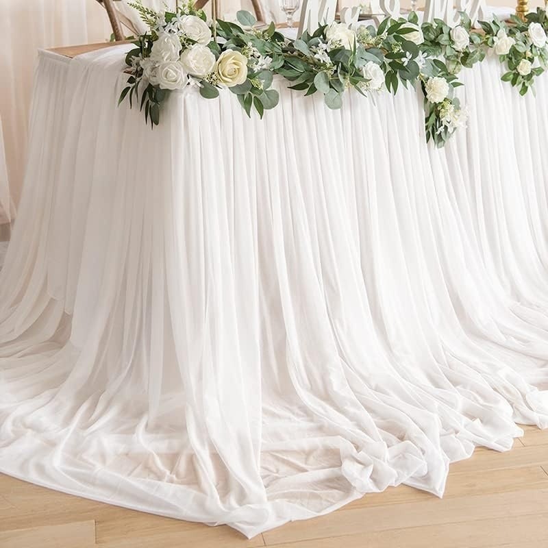 Mesa transfronteriza cascada de decoración de boda fiesta mesa de postres mesa cortina perla hilada de nieve alrededor de la mesa de cumpleaños