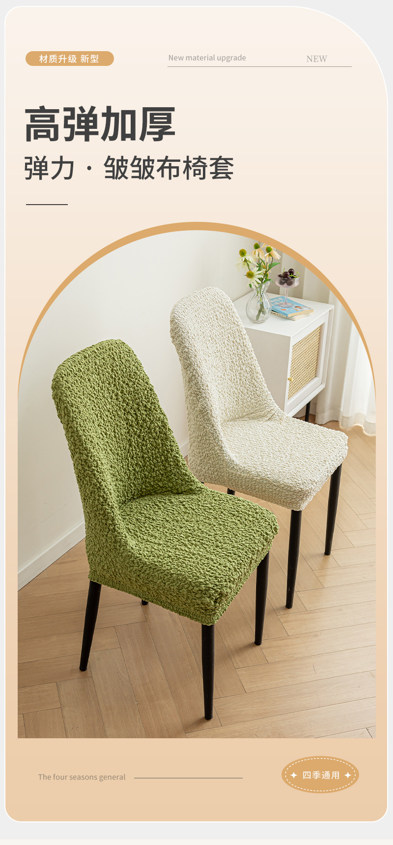 2025 cubierta de silla de mesa de comedor tela elástica plegada gruesa cubierta de asiento antideslizante cuatro estaciones anti-gato universal cubierta de taburetes