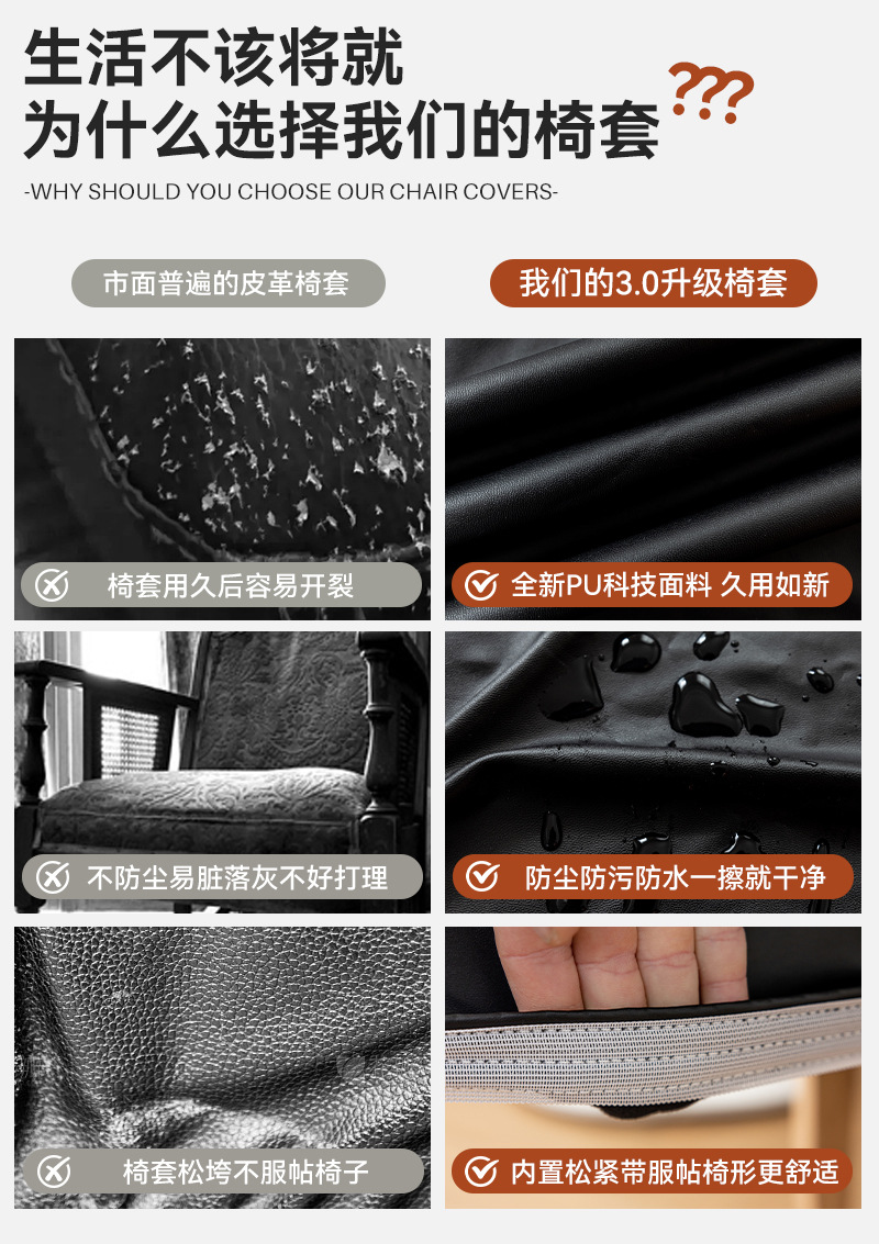 Cubierta de silla de cuero especial transfronteriza cubierta de silla antideslizante impermeable y a prueba de aceite cubierta de silla de comedor gruesa de color sólido para el hogar al por mayor