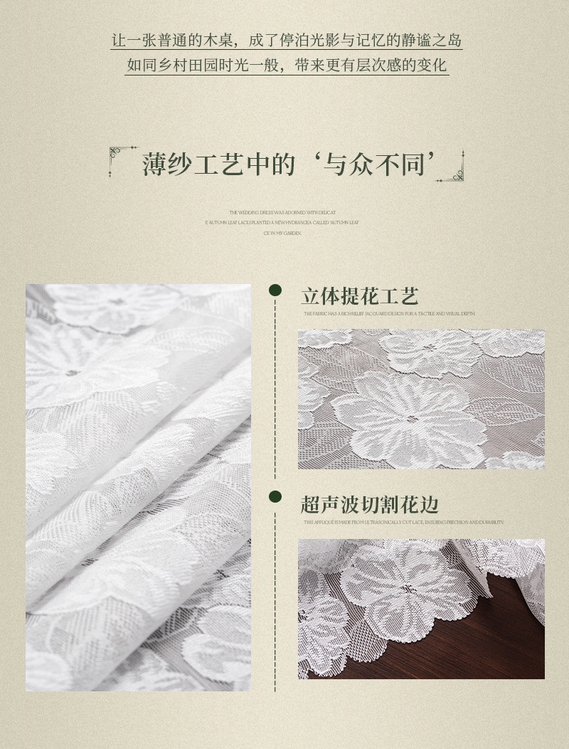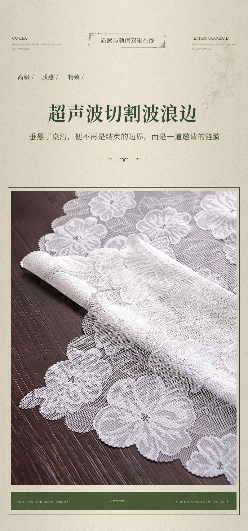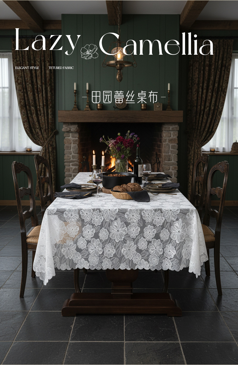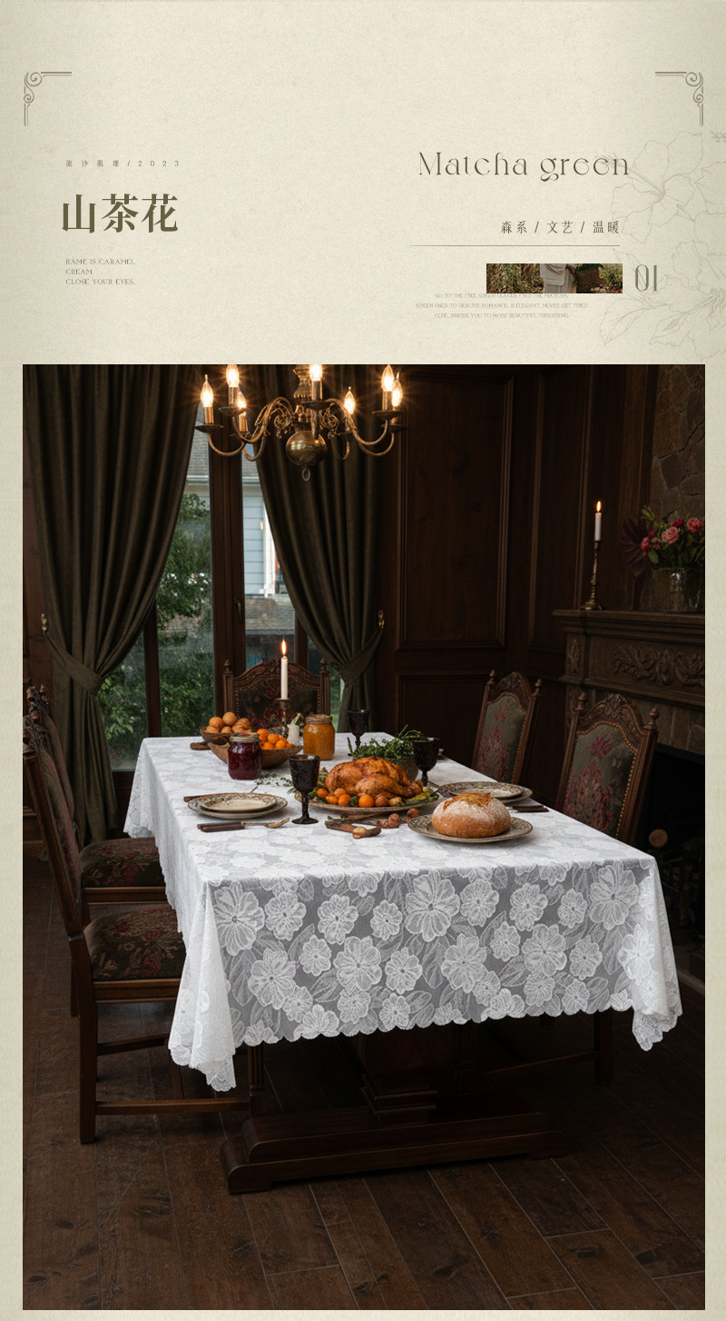 Camellia tela de mesa de encaje antideslizante de alta calidad tela de mesa de té lujosa ligera sensación de atmósfera de estudio tela de mesa cubierta transfronteriza mayorista