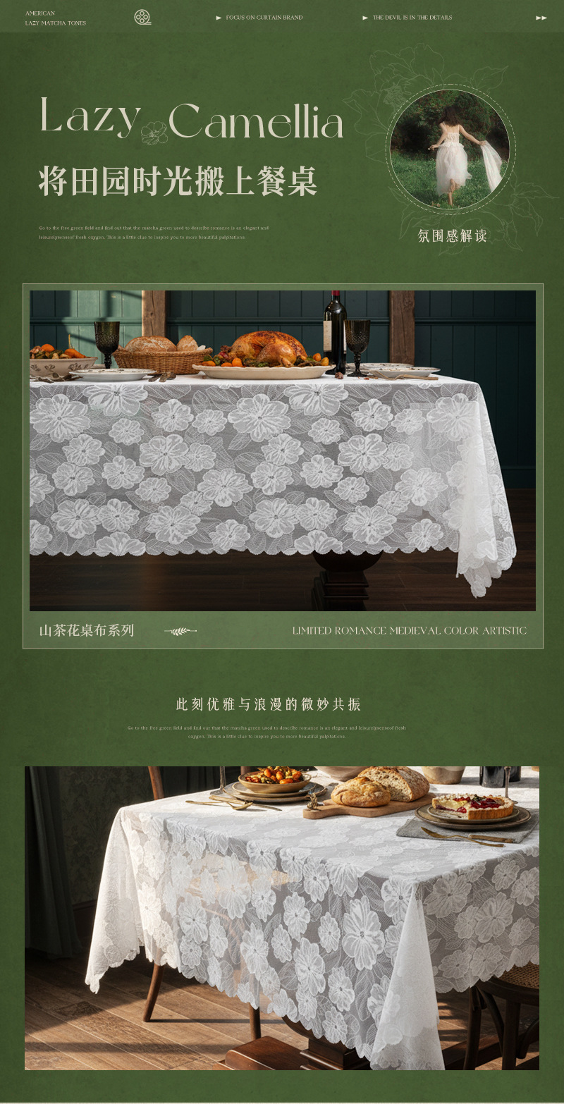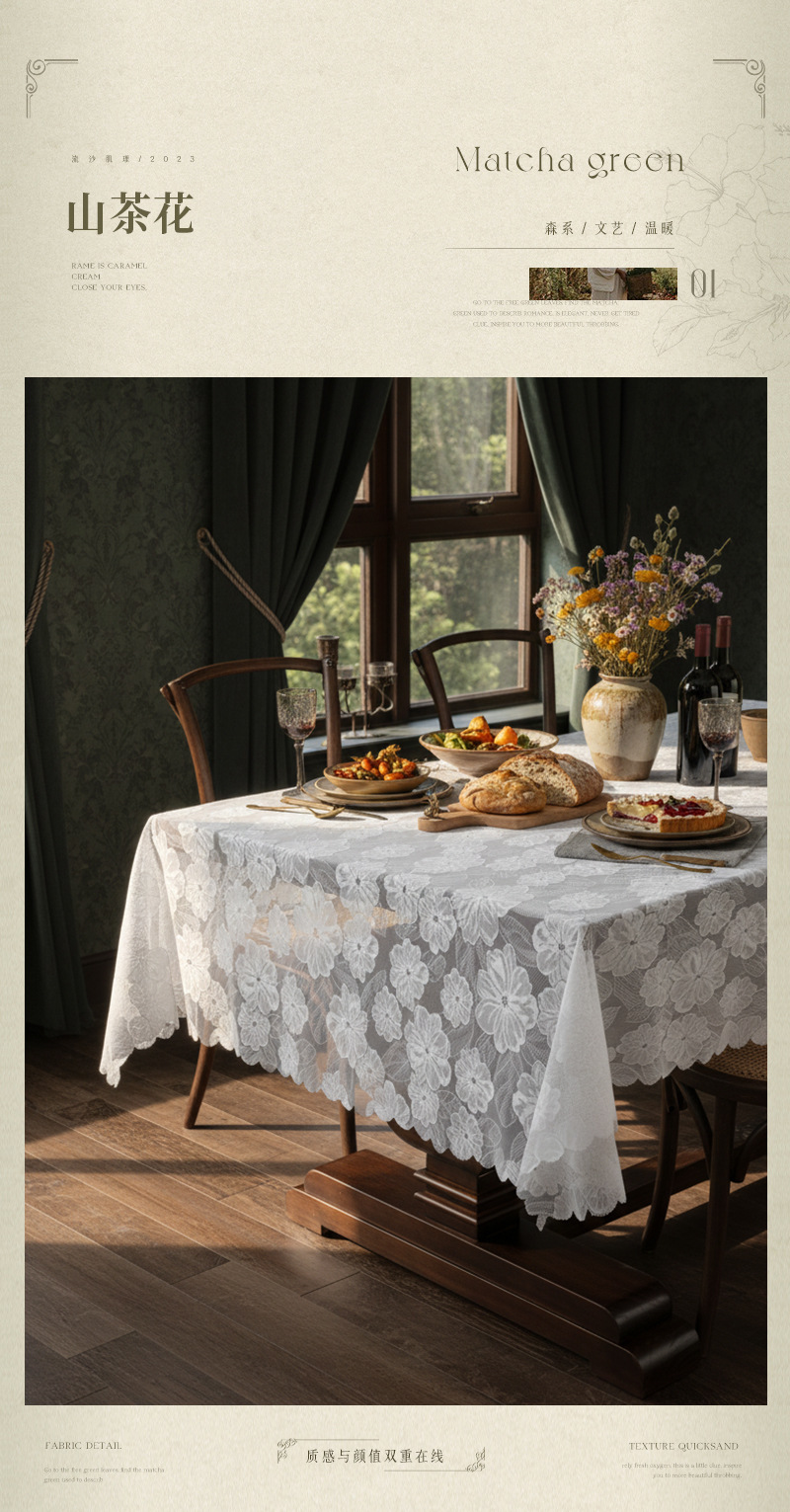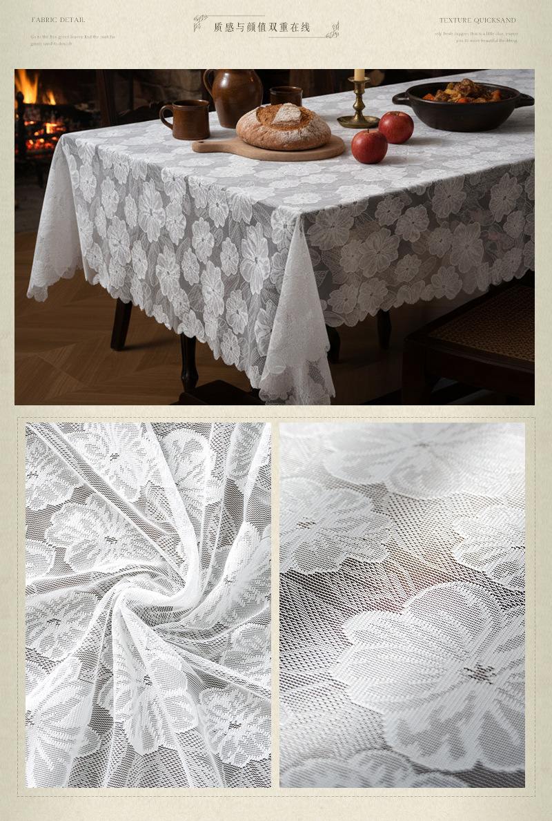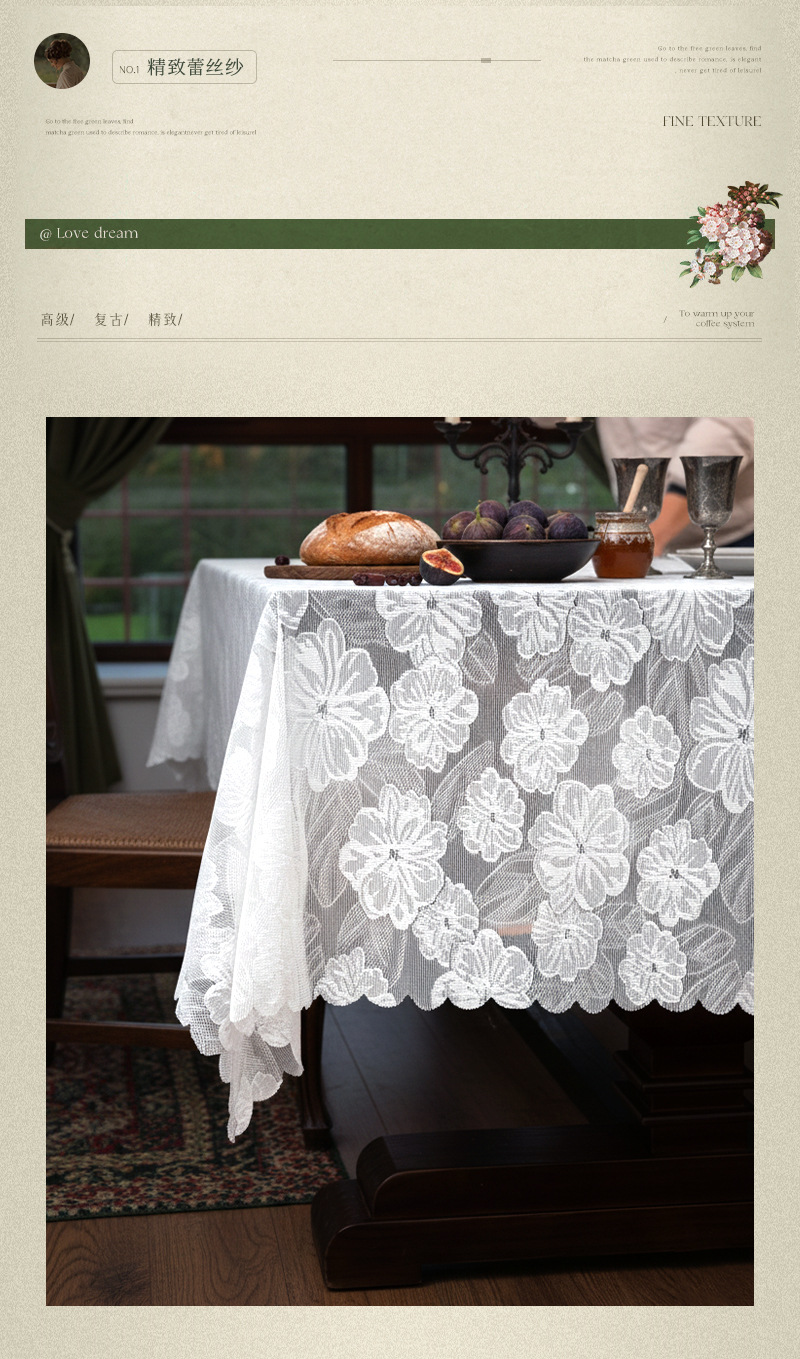 Camellia tela de mesa de encaje antideslizante de alta calidad tela de mesa de té lujosa ligera sensación de atmósfera de estudio tela de mesa cubierta transfronteriza mayorista
