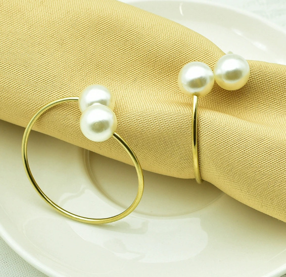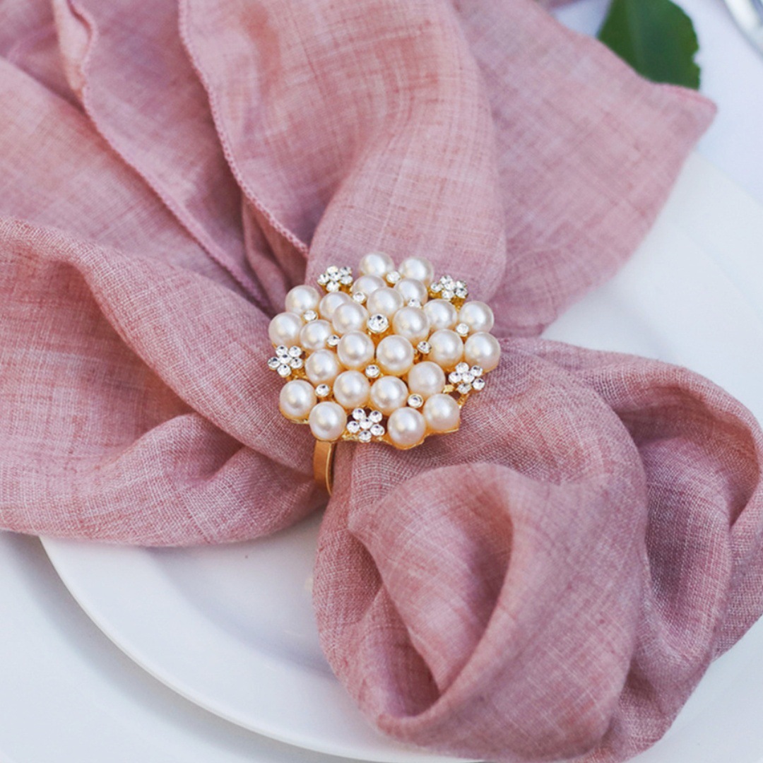 Hotel al por mayor oro servilletas anillo cubiertos diamantes delicados flores perlas servilletas buckle servilletas anillo de tela de boca caliente