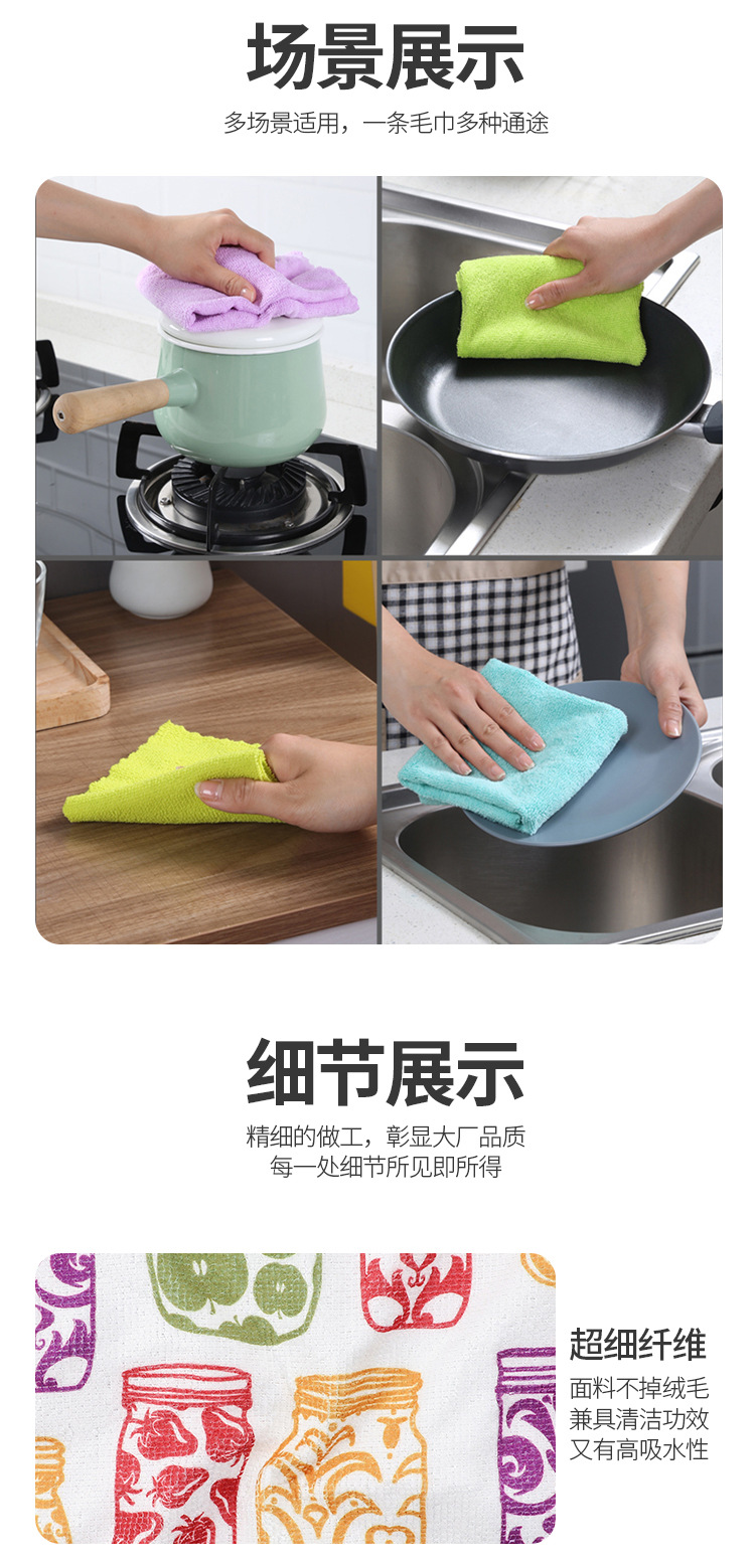 Ventas transfronterizas de toallas de lavaplatos de poliéster impresa doméstica toallas de limpieza de cocina multifuncionales toallas cuadradas de limpieza absorción de agua descontaminación