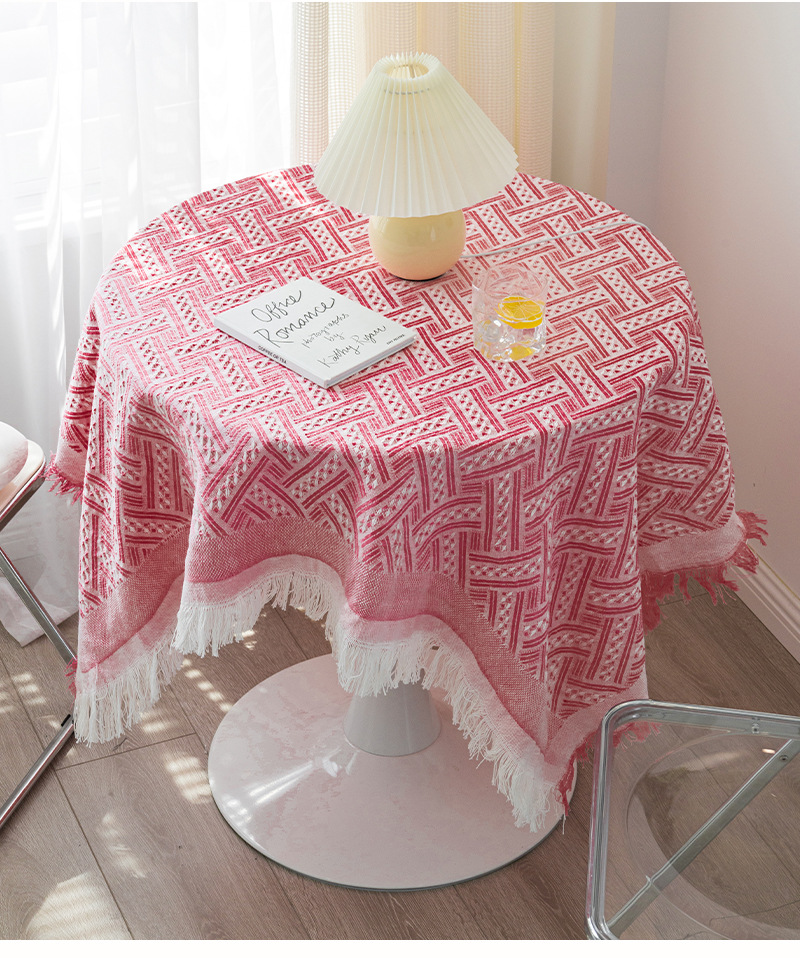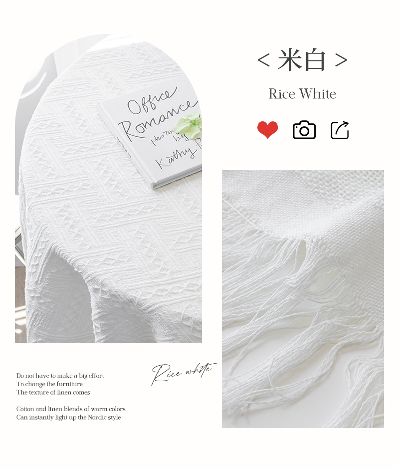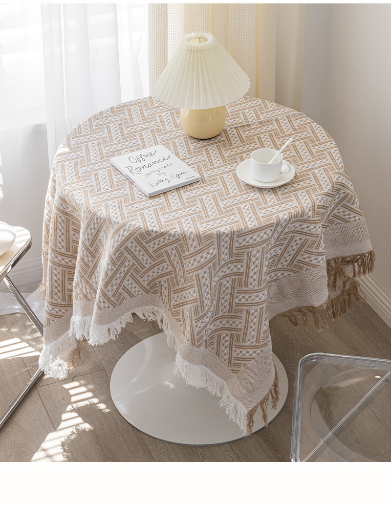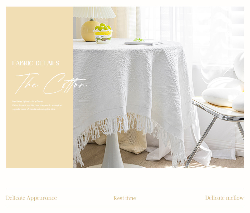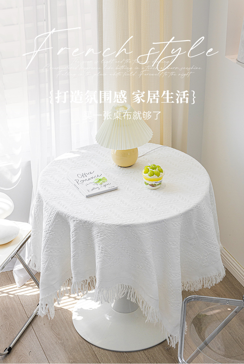 Mantel de estilo crema, hilo de algodón, borlas, tela de fondo para fotos de celebridades de Internet, mesa de centro decorativa rectangular, toalla de mesa, toalla de mesa