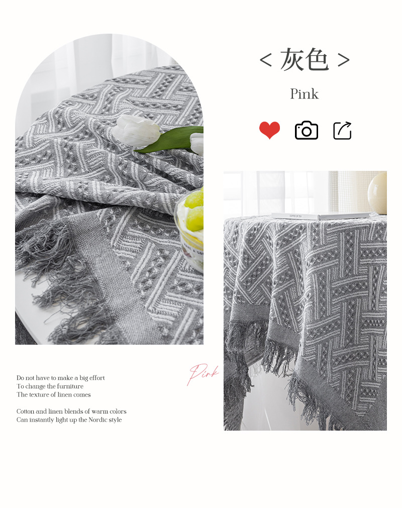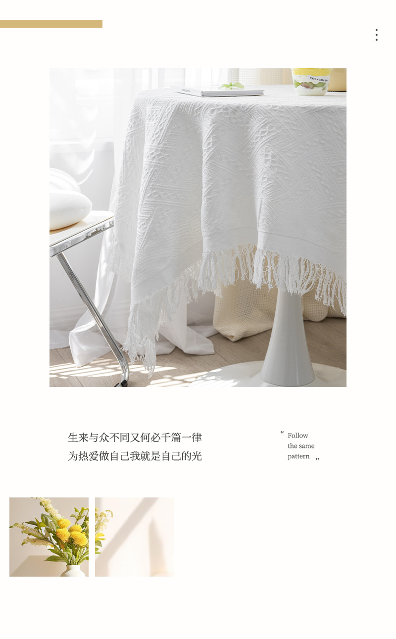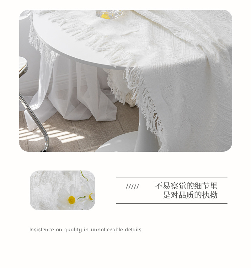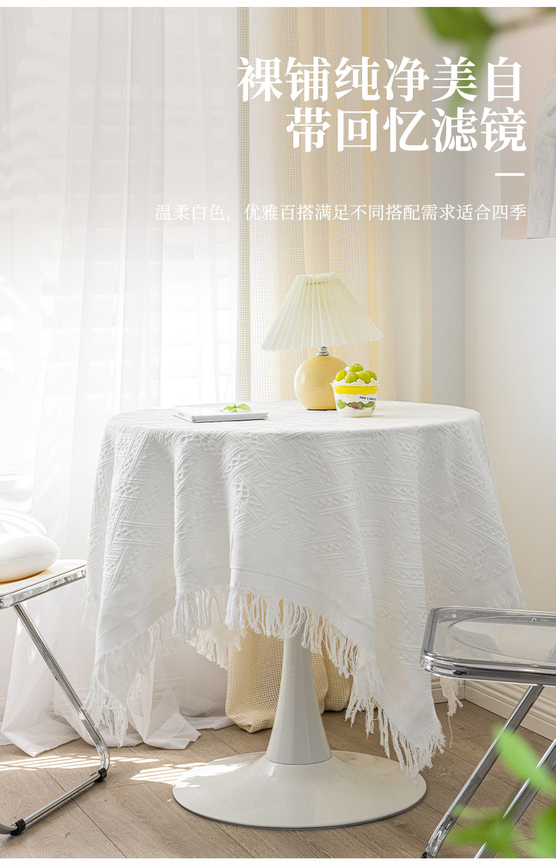 Mantel de estilo crema, hilo de algodón, borlas, tela de fondo para fotos de celebridades de Internet, mesa de centro decorativa rectangular, toalla de mesa, toalla de mesa