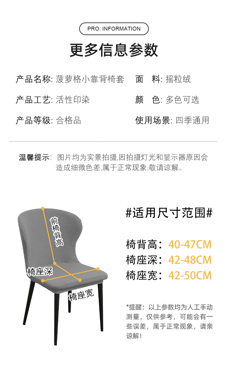 Respaldo curvado cubierta de la silla a cuadros engrosada cubierta de la silla de comedor curvada cubierta de palillos a prueba de polvo anti-fouling cuatro estaciones Universal