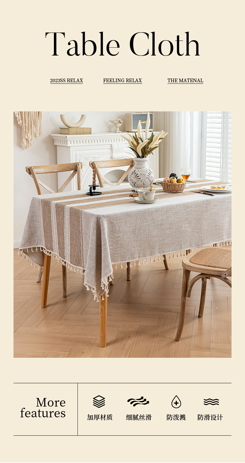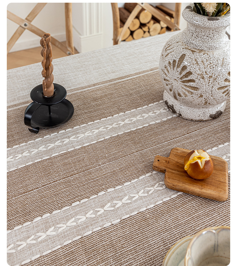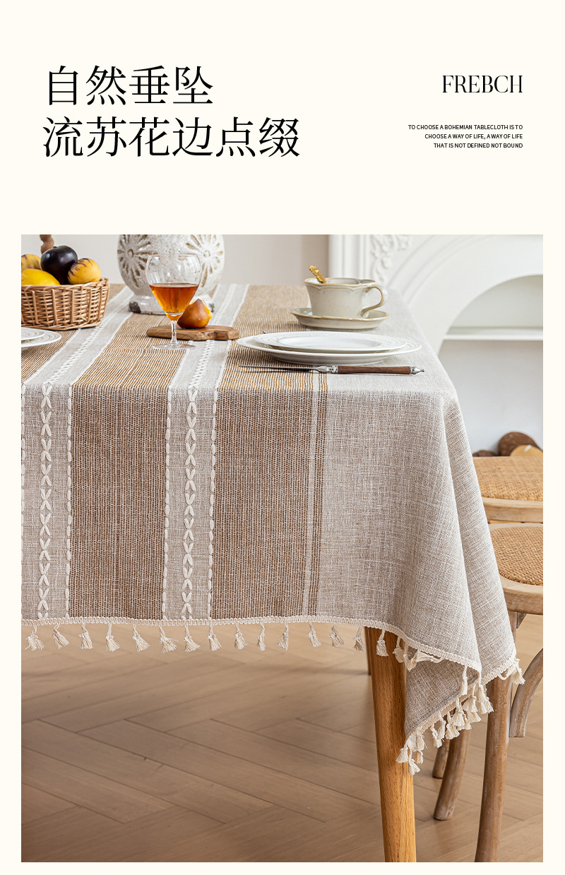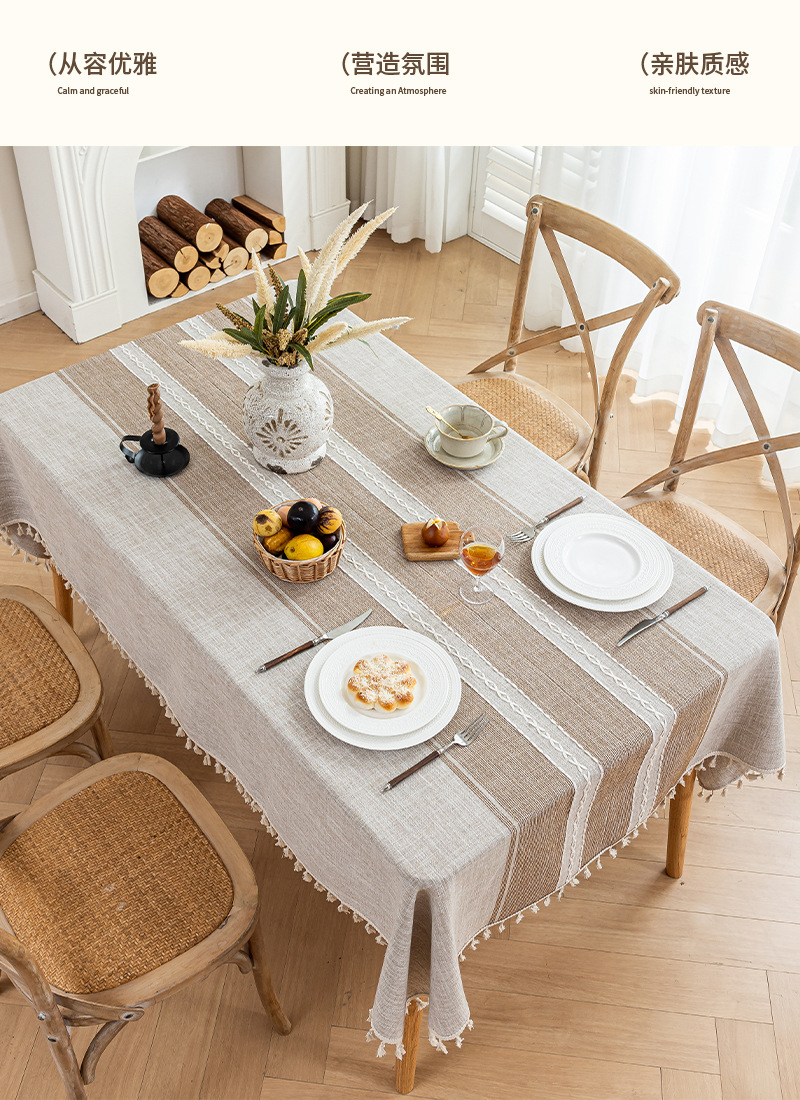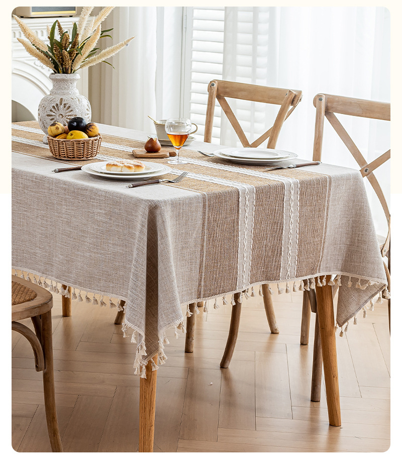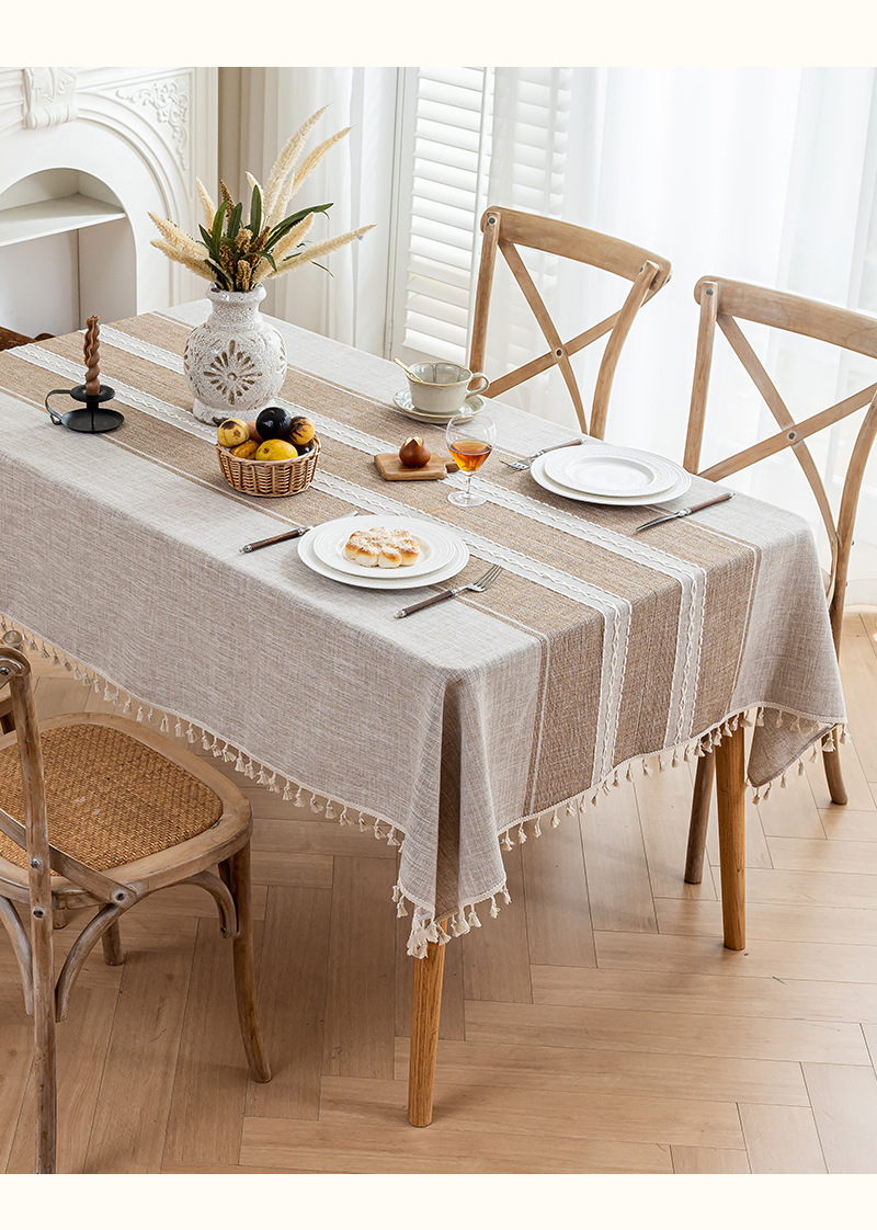 Mantel de comedor de lino y algodón de imitación de estilo japonés, mantel impermeable de lujo ligero y de alta gama, mesa de centro a rayas literarias, tela de tela