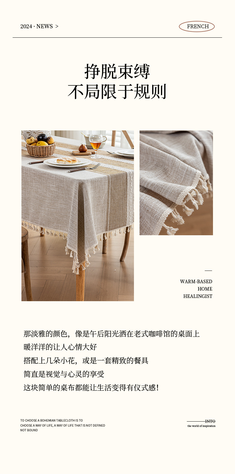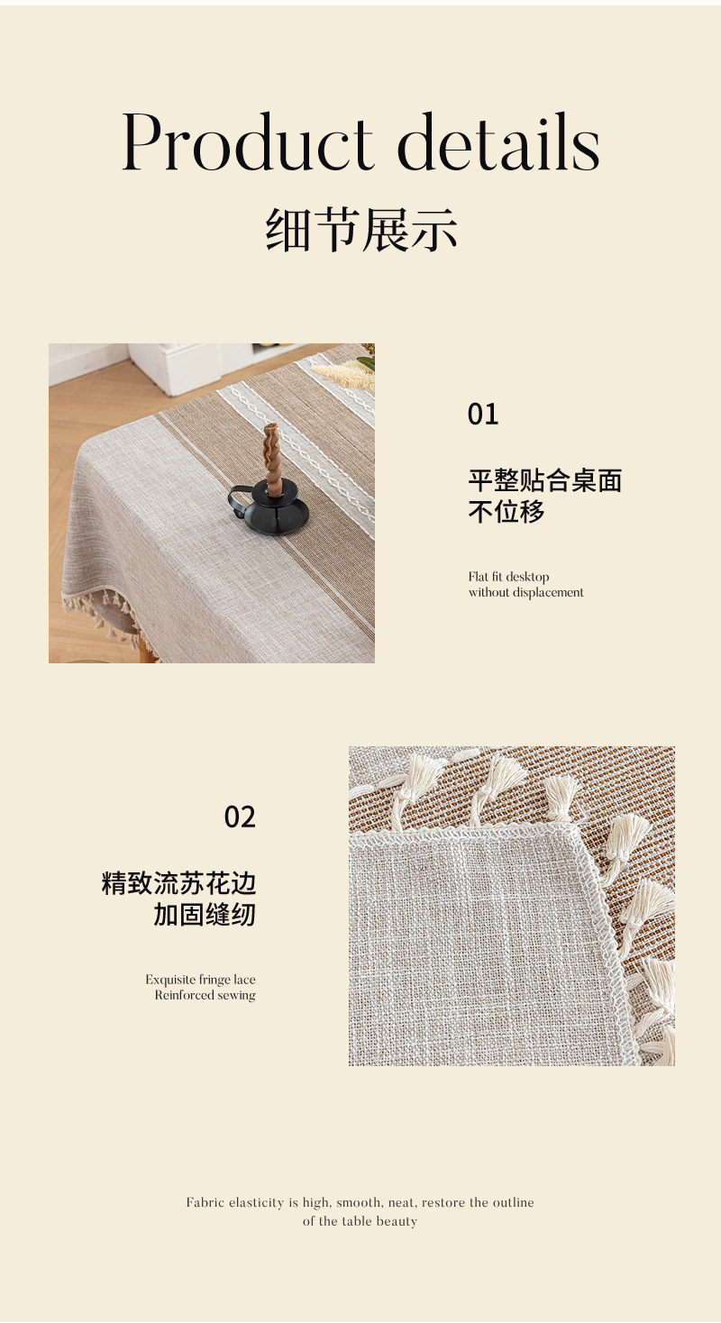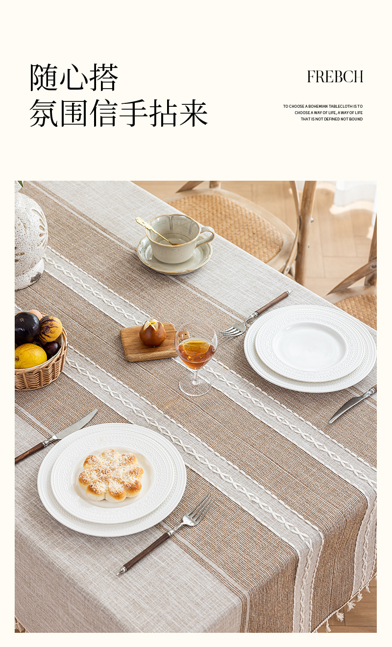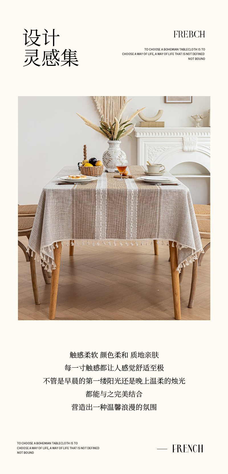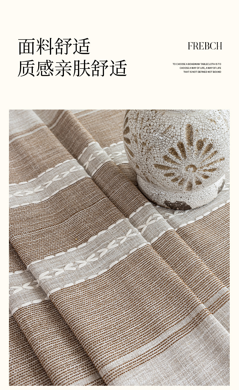 Mantel de comedor de lino y algodón de imitación de estilo japonés, mantel impermeable de lujo ligero y de alta gama, mesa de centro a rayas literarias, tela de tela