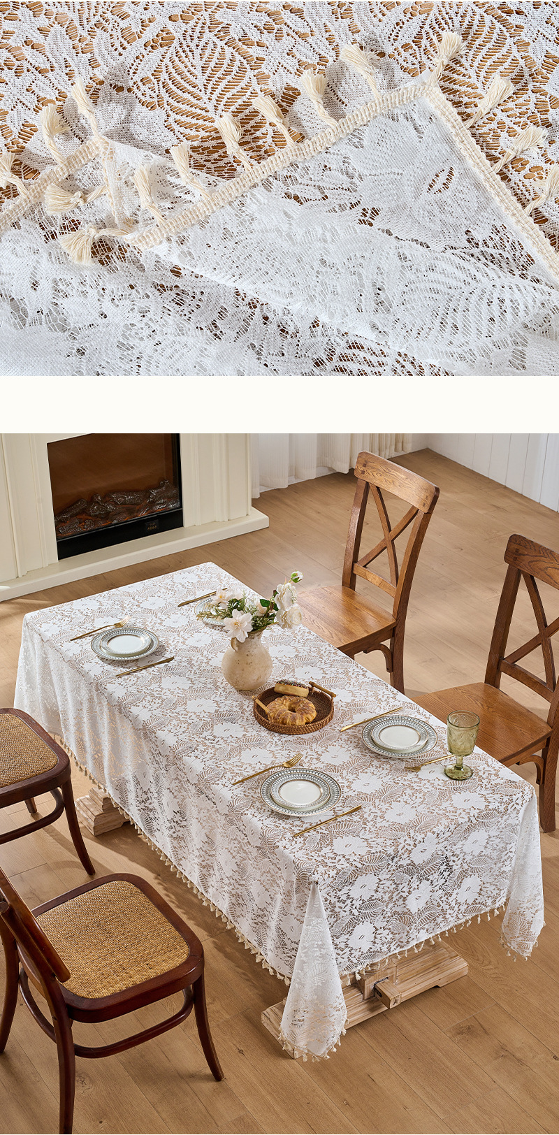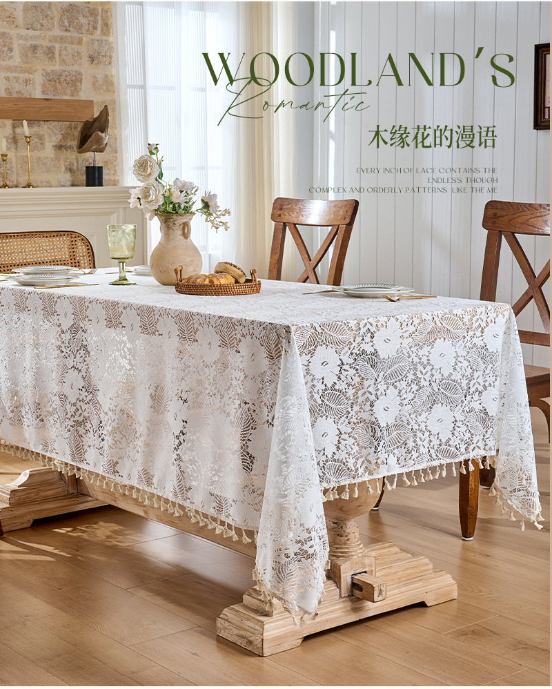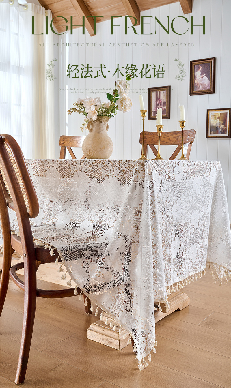 Mantel de comedor de encaje pastoral francés, mantel rectangular de lujo ligero, de alta calidad, mantel de mesa de centro para el hogar, tela antideslizante y resistente al desgaste